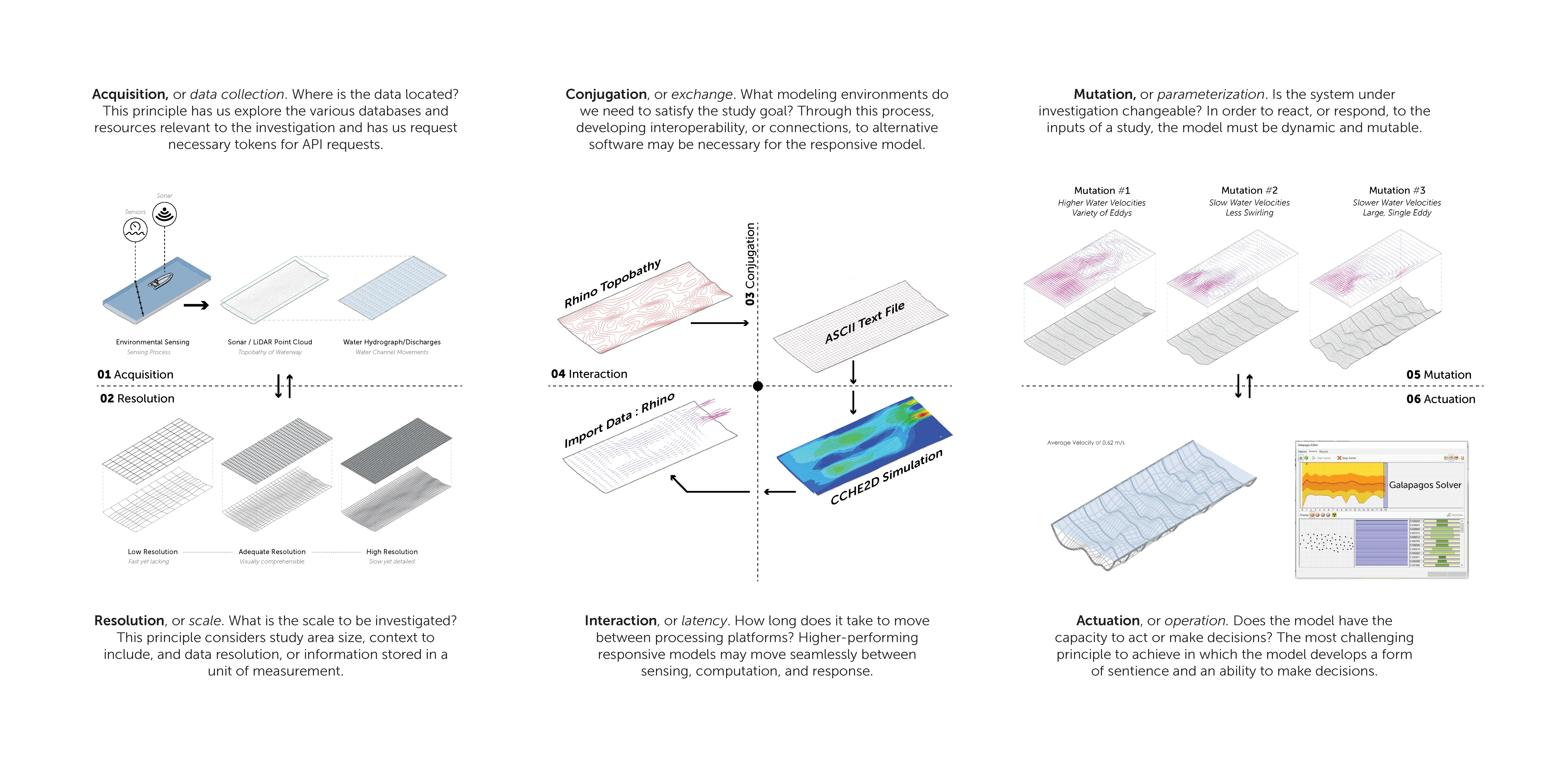 Over the past decade, a growing list of responsive modeling projects has been explored and seeks to redefine our discipline and close the gaps identified in Steinitz’s framework. Like Bradley Cantrell, Justine Holzman, Karen McCloskey, Keith VanDerSys, or collaborations between the Dredge Research Collective and SCAPE, the responsive model continually redefines the practice of landscape architecture by pushing the boundaries of our discipline. (Cantrell & Holzman, 2016 and M’Closkey & VanDerSys, 2017)