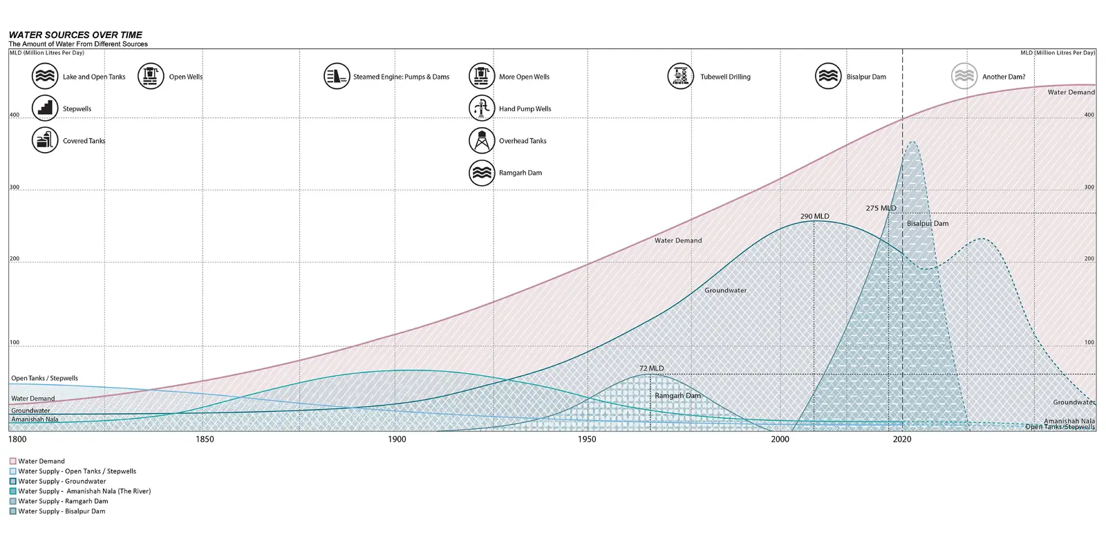 People in the city of Jaipur, India have always been struggling with water scarcity during dry seasons and inundation during monsoon seasons throughout history due to the semi-arid climate and improper water use.