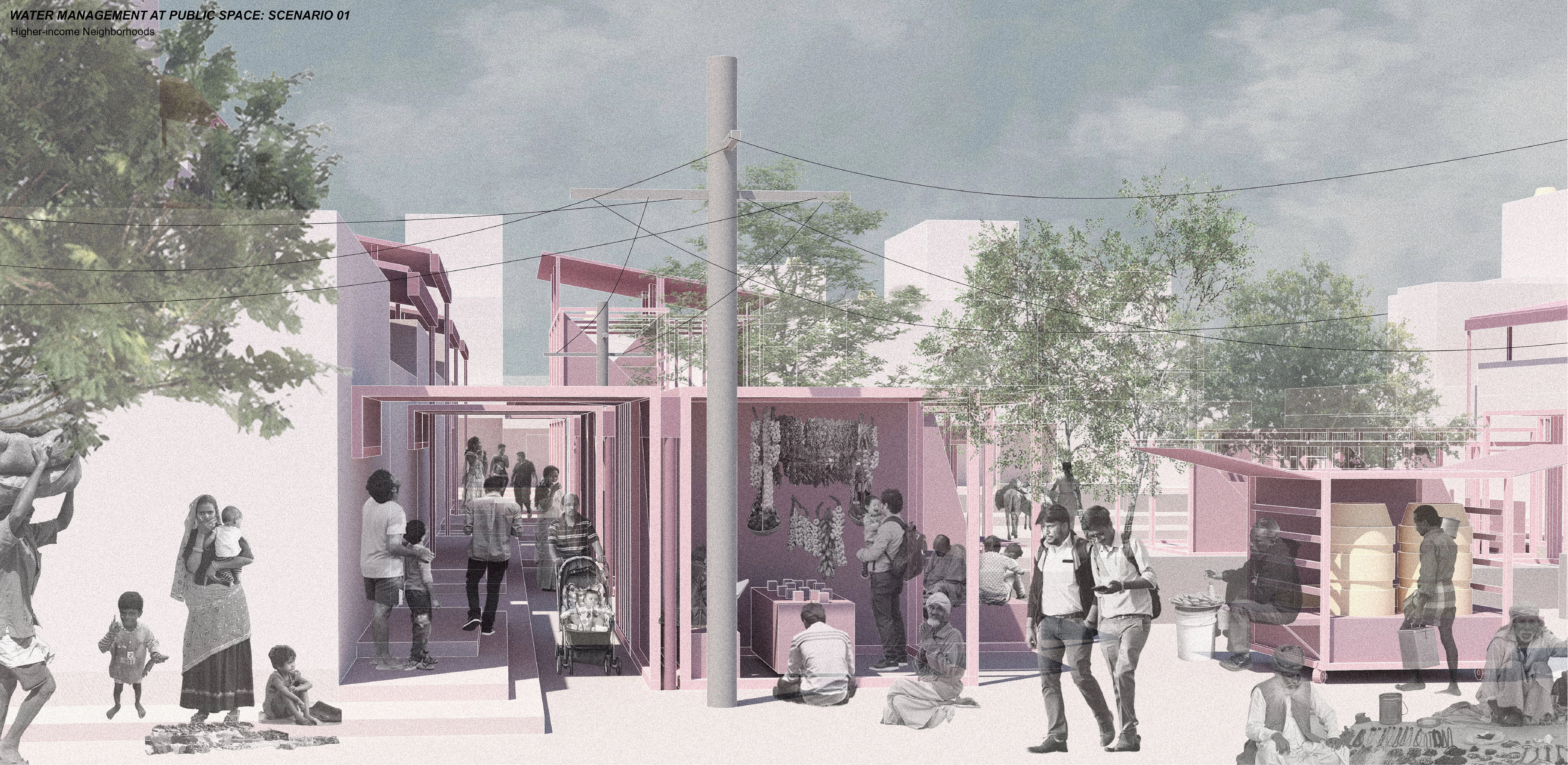The project was dealing with the water issues in Jaipur, India, researching on the possibility of altering water use by creating a system of water infrastructure and management in housing and public space.