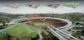 The inward extrusion and growth of the landscape in a hierarchy of circles also caters to the main theme of ecological restoration of the post-blast landscape. From the tree planting area in the outer circle, to the shrub planting area in the middle circle, and finally to the herb planting area in the inner circle centered on the explosion crater. Following the growth of the landscape and echoing the topography of the site, a basin-shaped ecological green island is created with the outer circle high and lowered inward.