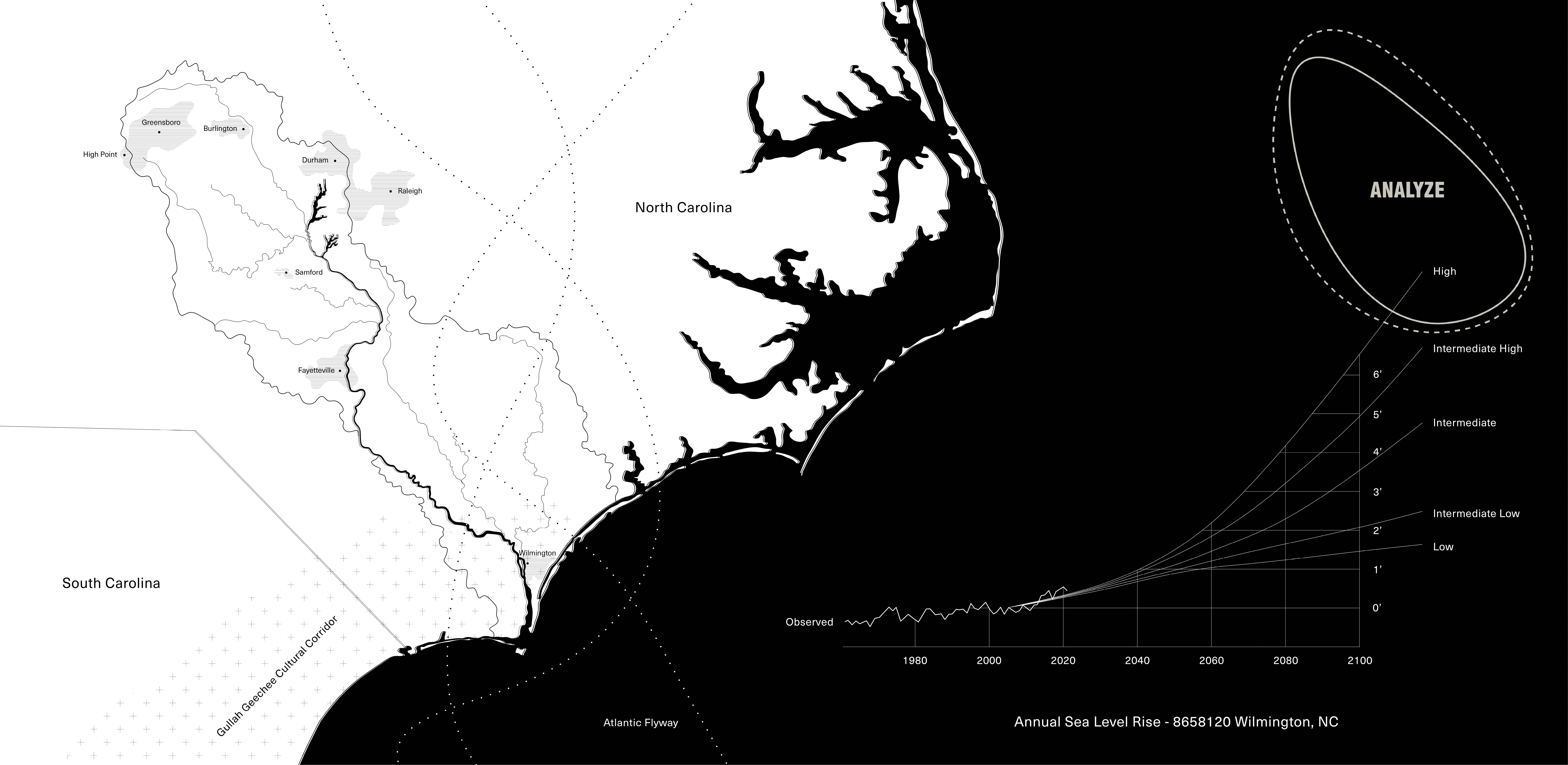 Eagles Island, an ecologically vital freshwater marsh, has been continually altered through processes of extraction and deposit. This landscape, directly adjacent to Wilmington, North Carolina and between two of the state’s fastest growing counties, presents a generational opportunity for community stakeholders. Developed through informed and multiscalar analysis, Fixed in Flux proposes a ecologically distinct and regionally significant park that anticipates adaptation to dynamic natural forces through the next century and beyond.