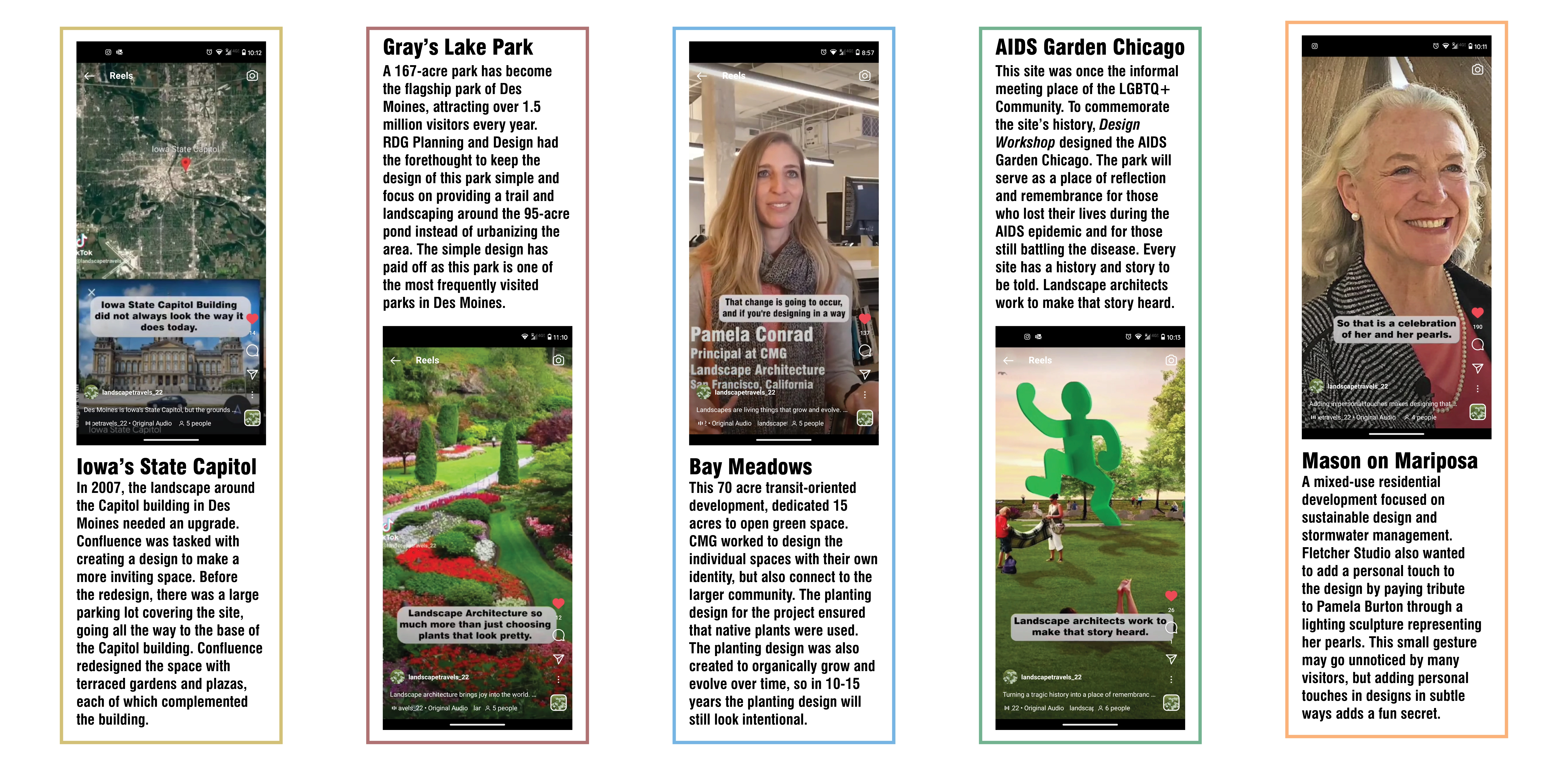 @landscapetravels_22 continues to reach new people every day, through tri-weekly posts, highlighting unique aspects of landscape architecture. Each video is under 60 seconds giving viewers a quick glimpse into projects in cities they live in or visit. Every video highlights a different aspect of landscape architecture, while following a similar story pattern, broadening the public’s understanding of the breadth of landscape architecture.