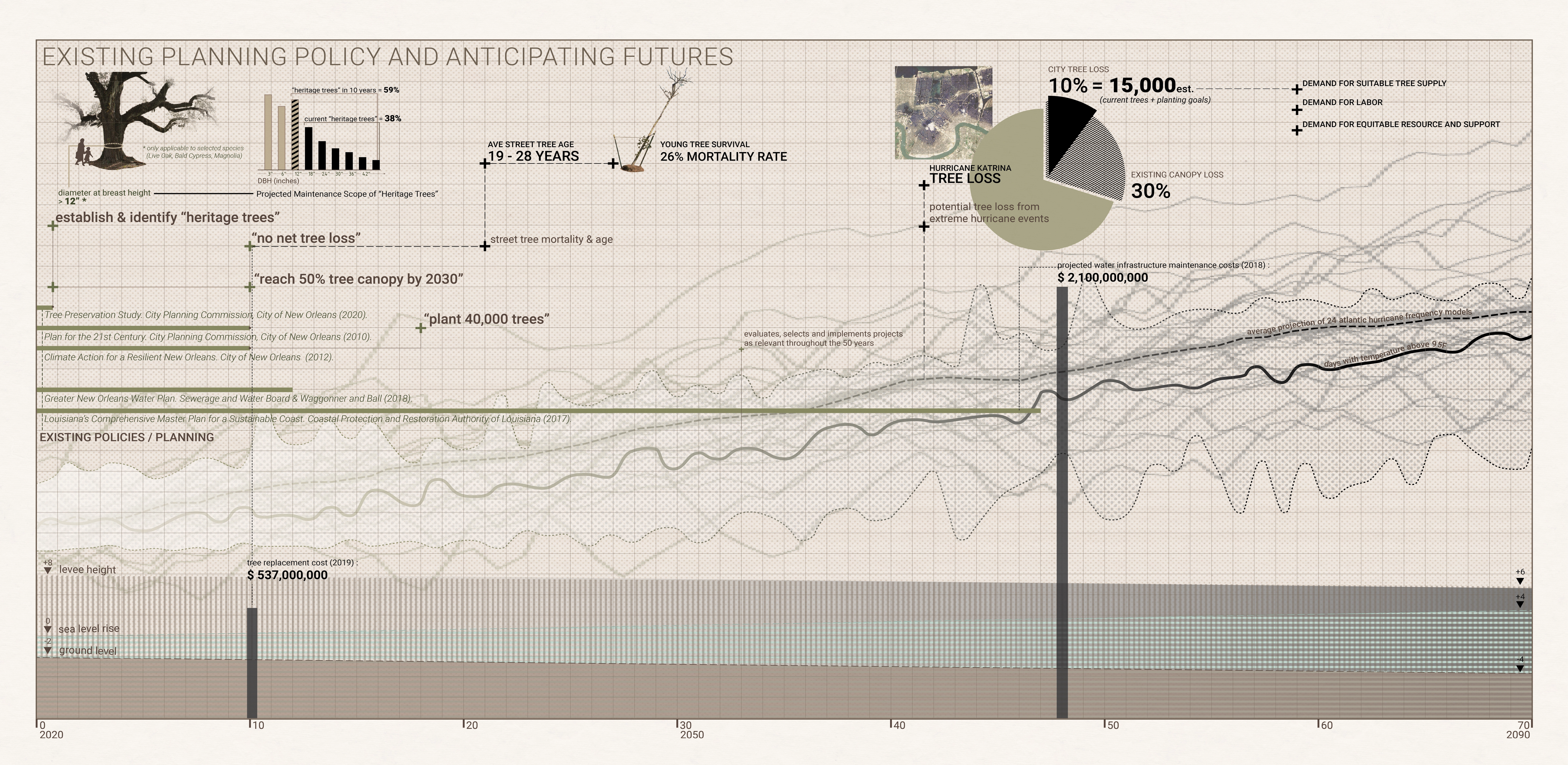 In a city that is already facing intense impacts from climate change due to sea level rise, subsidence, and hurricanes, a systematic and geodata-based approach to street trees is proposed to allow urban tree planning to become responsive to nuanced and complex situations of the city, as well as anticipatory towards future projections of the city and environment.