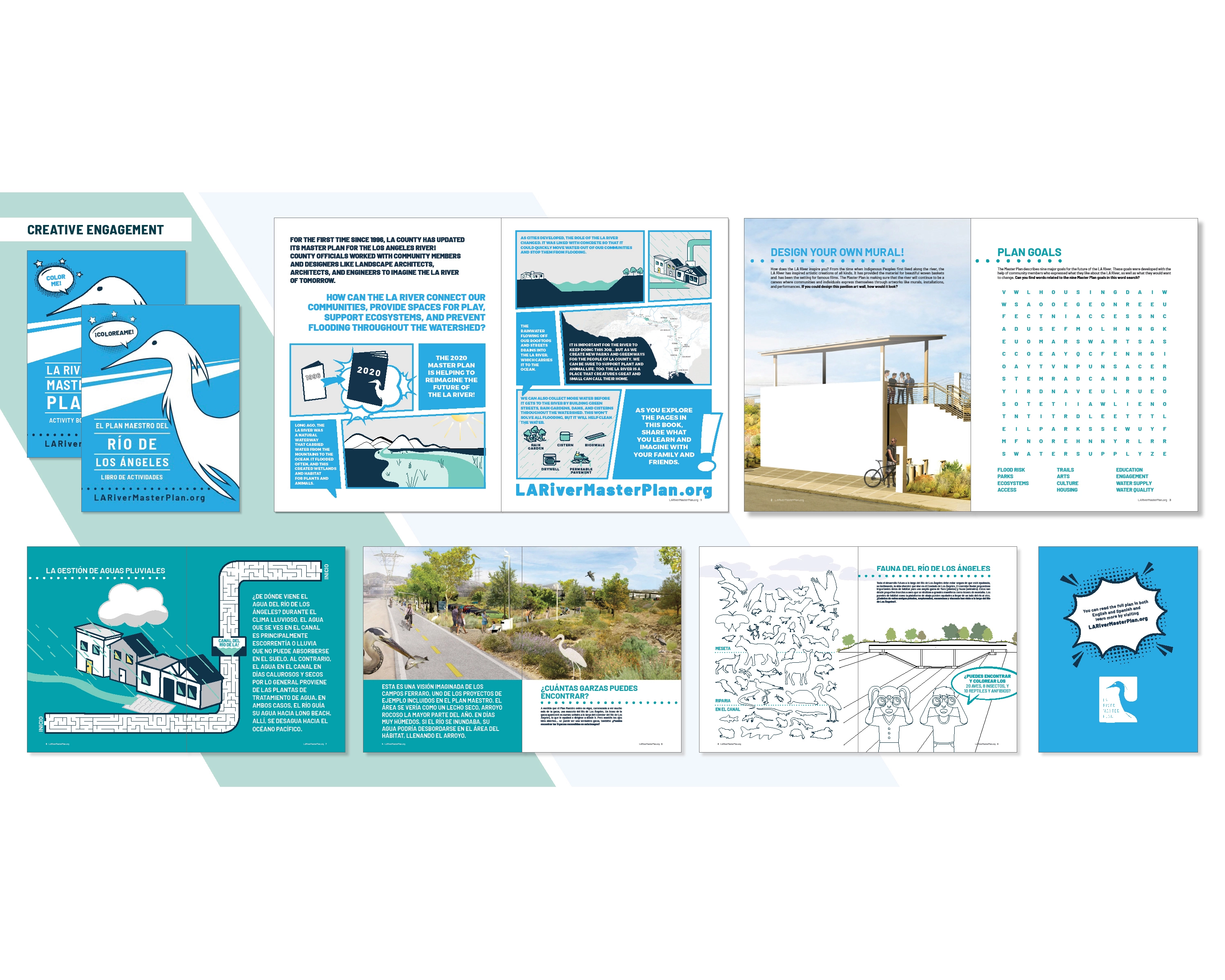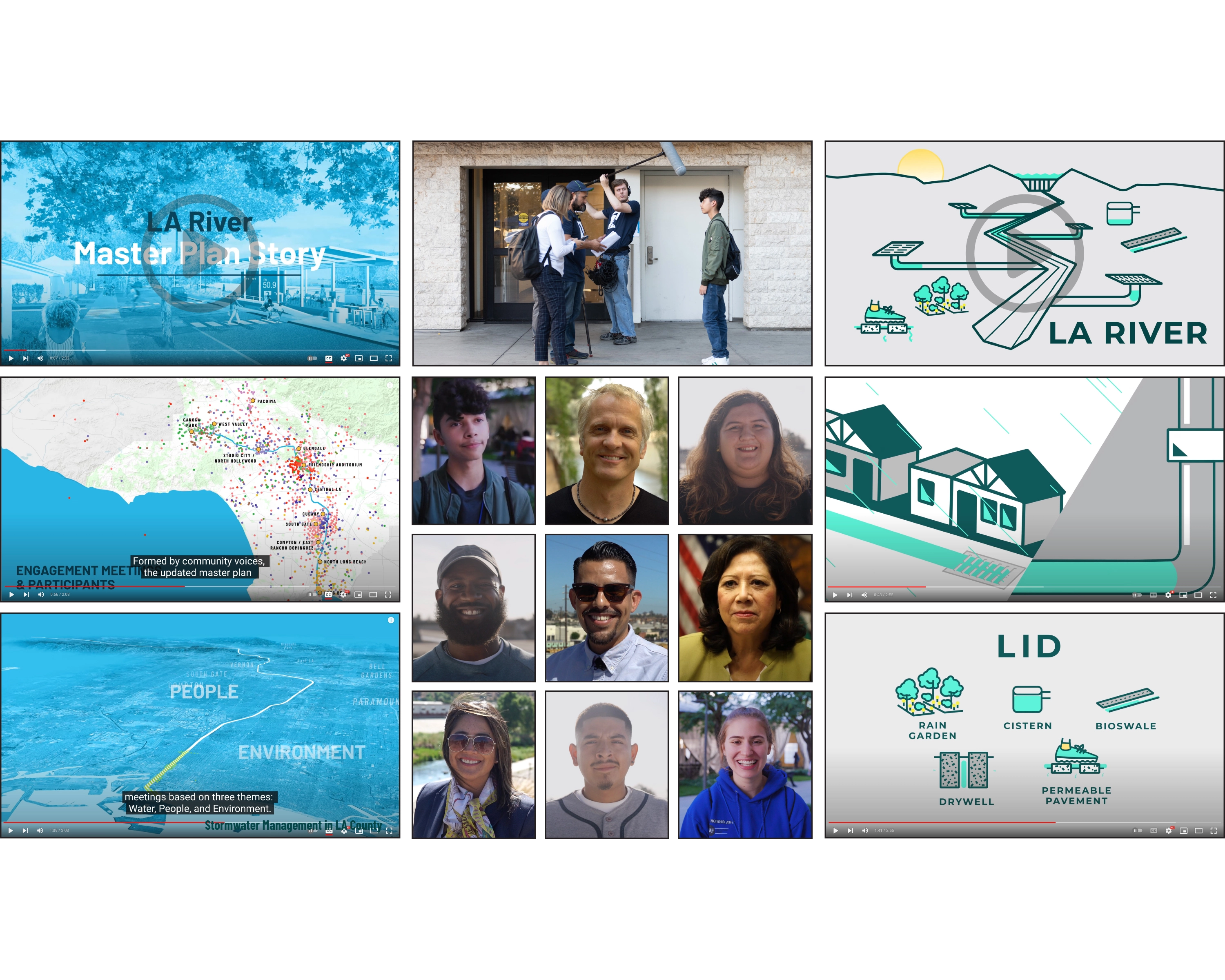 One million people live within one mile of the LA River. While fragmented jurisdictions, land ownership, and funding constraints have presented hurdles to rethinking the LA River for decades, the 2022 LA River Master Plan outlines new strategies that support the transformation of the river from a single-use corridor to a multi-benefit resource for LA County communities. In 2021, a poll found that fewer than 50% of County residents had ever visited the river. Since then, increased usage and familiarity of the river corridor reflect positive shifts in the education and engagement of local communities reflected in the plan’s multilingual, hyper-local, and innovative communications strategy. During the engagement process, nearly one million people engaged in person or online. The plan’s engagement process employed a variety of media and activities to ensure that resident concerns and aspirations across geographic, language, and accessibility spectra were recognized and reflected in the plan. For example, the plan includes nine goals addressing flood risk, equitable open space access, healthy ecosystems, arts and cultural opportunities, housing affordability, education, and water quality and reliability. These evolved out of community priorities and deep research of the river and LA County’s physical, social, and cultural attributes. Hundreds of datasets informed the plan, and several datasets were created during the planning process, including a wealth of new data generated from LA County residents through the engagement process. Community meetings, surveys, and innovative digital communications were cornerstone engagement methods that sequentially introduced conditions along the river, documented resident concerns, used feedback to prioritize goals, and provided immersive walk-throughs of master plan components. A Youth Summit engaged 700 high school students, and telephone town halls reached more than 5,000 individuals unable to attend in-person meetings and lacking digital access. Additional events hosted by regional and local community partners included popup sidewalk and park activations, educational activities, and data gathering. A multicultural-focused media service hosted a rollout press event that was translated into three languages in addition to English. As the plan timeline covered the COVID-19 pandemic, the team worked to ensure consistent communications and community engagement even during the pandemic’s toughest days. Throughout the planning process and in the plan’s final delivery, creative graphic tools and representations helped make complex information accessible to a general audience. Print and digital ad campaigns, videos, and an engagement website were among the many media developed for this purpose. For example, a film series called “River Stories,” capturing interviews about peoples’ personal connections to the river, was screened at engagement events. Another video series used animation to inform viewers about watershed management and flood safety. An activity book for children engaged the county’s youngest residents. The final plan, adopted in June 2022, is now publicly accessible through an interactive website at www.larivermasterplan.org. The website includes PDF downloads of the master plan’s three volumes—a main document and two technical appendices—as well as interactive content and research tools that will continue to serve LA County’s ten million residents through the plan’s implementation.