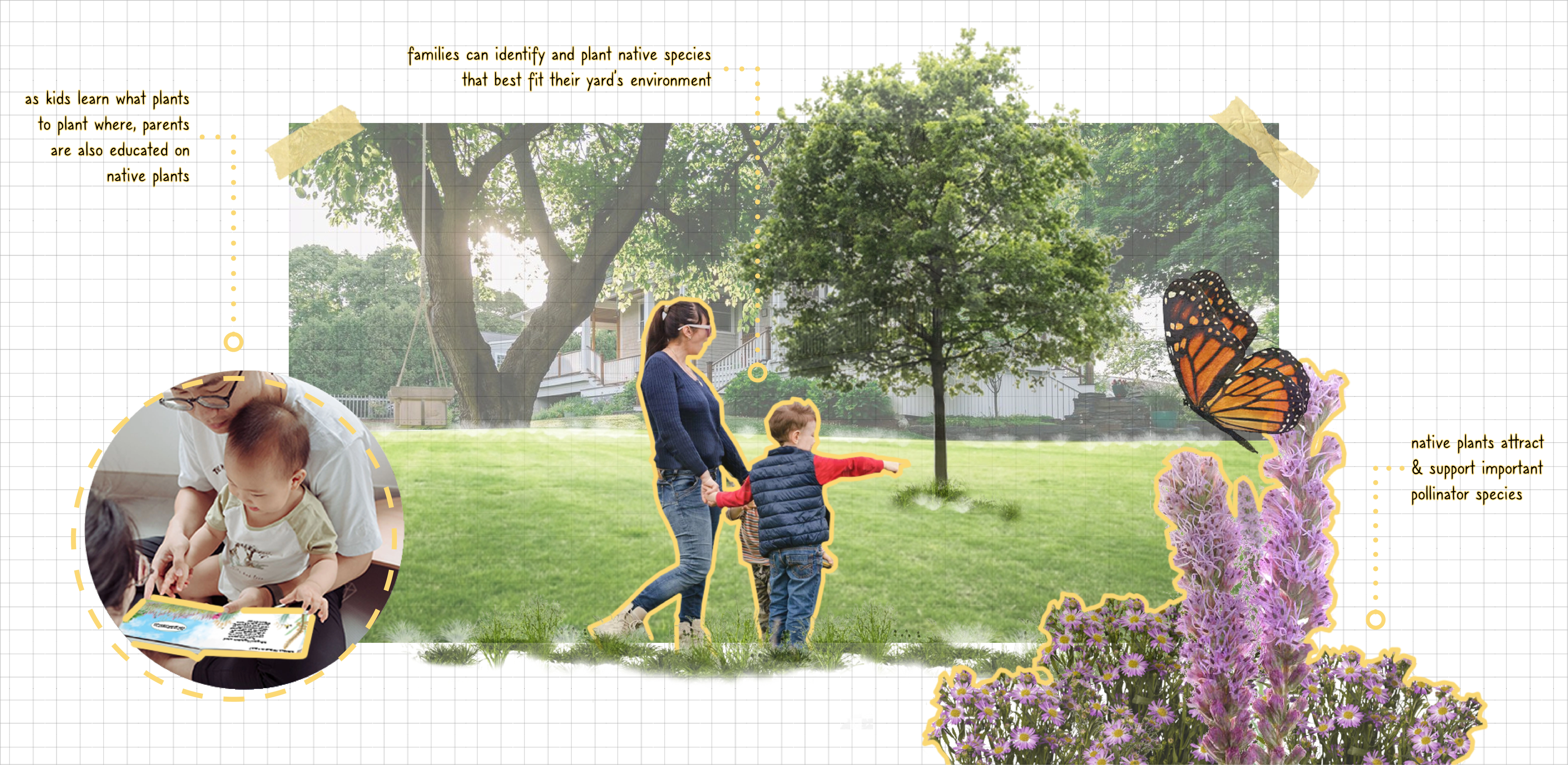 "Children's Book and Learning Games on Native Plants" are the efforts of us landscape architecture students passing down to younger audiences two crucial things we have learned during our time as university students: plant native, and right plant, right place! By passing down this knowledge earlier in childrens' education, the native ecosystems and habitats of our local environments could drastically change for the better and promote healthier habitats.