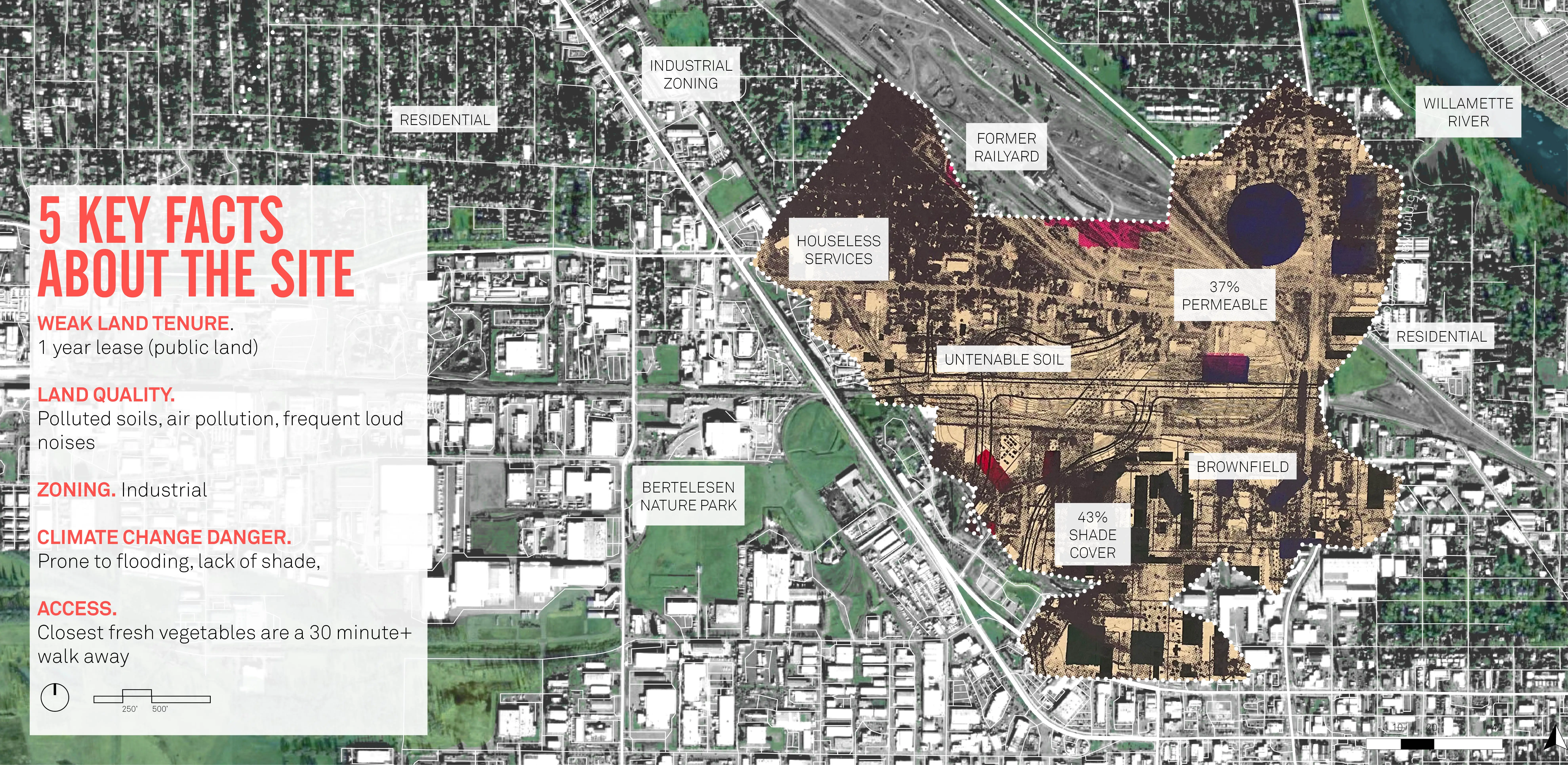 Heat is a major weather-related threat in the US, and neighborhoods with a higher proportion of people of color in New York experience more significant heat-exacerbated mortality, highlighting the impact of environmental racism. Hunts Point, one of the most heat-vulnerable neighborhoods in NYC, where almost half the population lives below the poverty line and lacks green spaces, has a 98% people of color population. Despite hosting the world's largest food distribution industrial park, the neighborhood is also a 'food desert', lacking access to fresh produce. This project envisions urban agriculture as a solution to address the urban heat island effect while simultaneously meeting the need for healthy and fresh food for the local community.