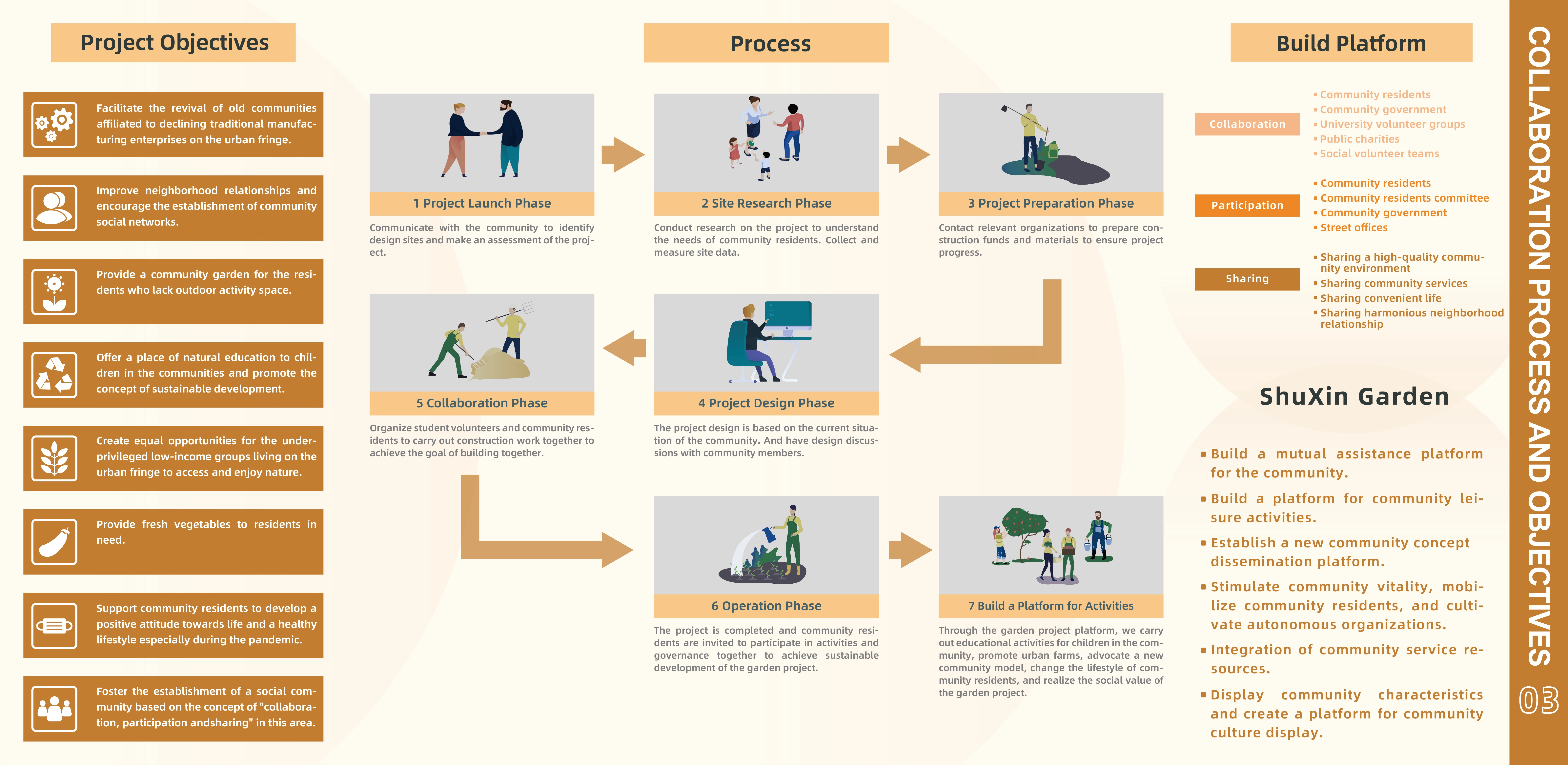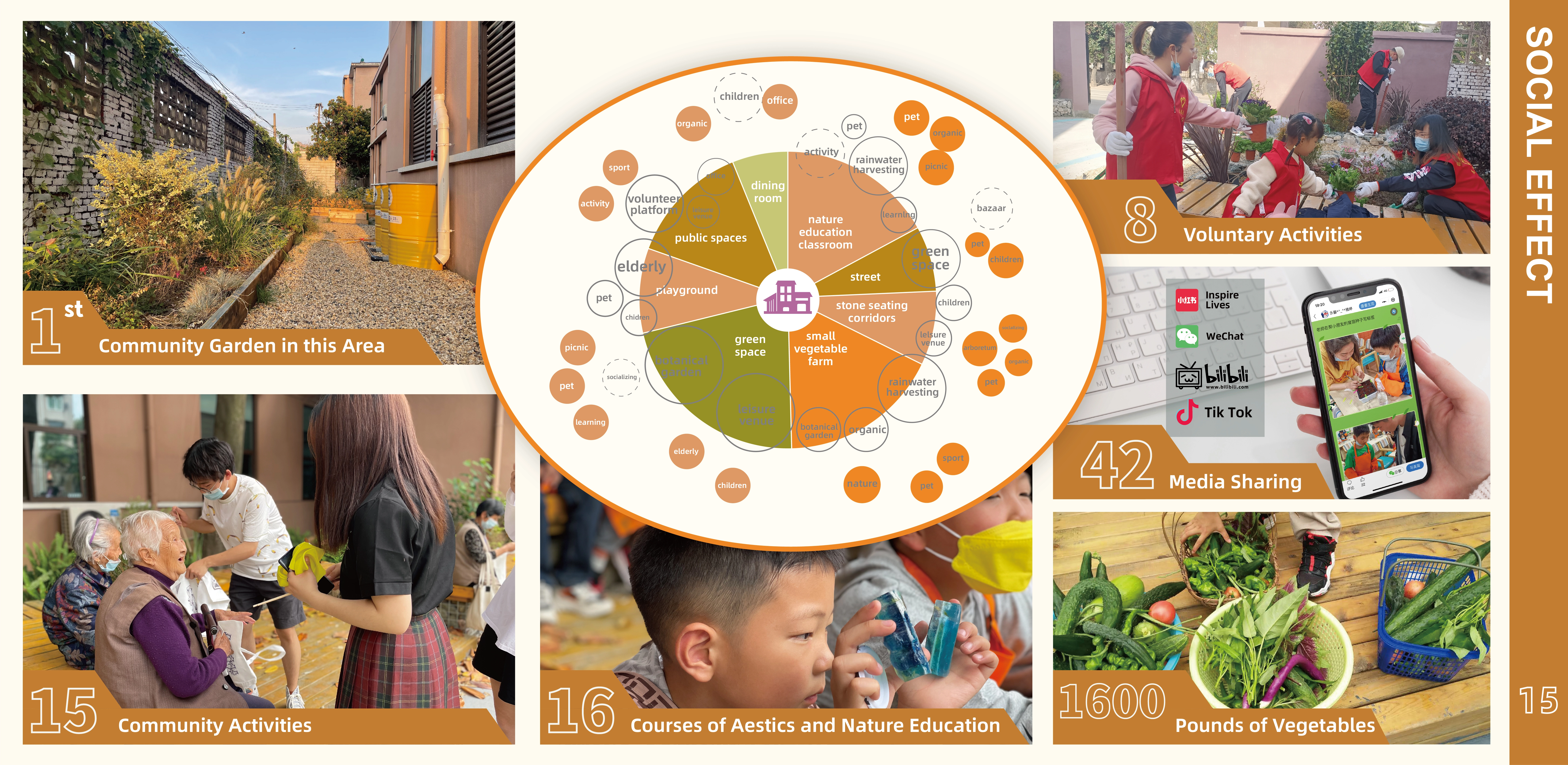 The community garden focuses on low-income groups on the urban fringe. By improving the community environment, it encourages residents to participate in community building, interact with neighbors, and develop a healthy lifestyle.