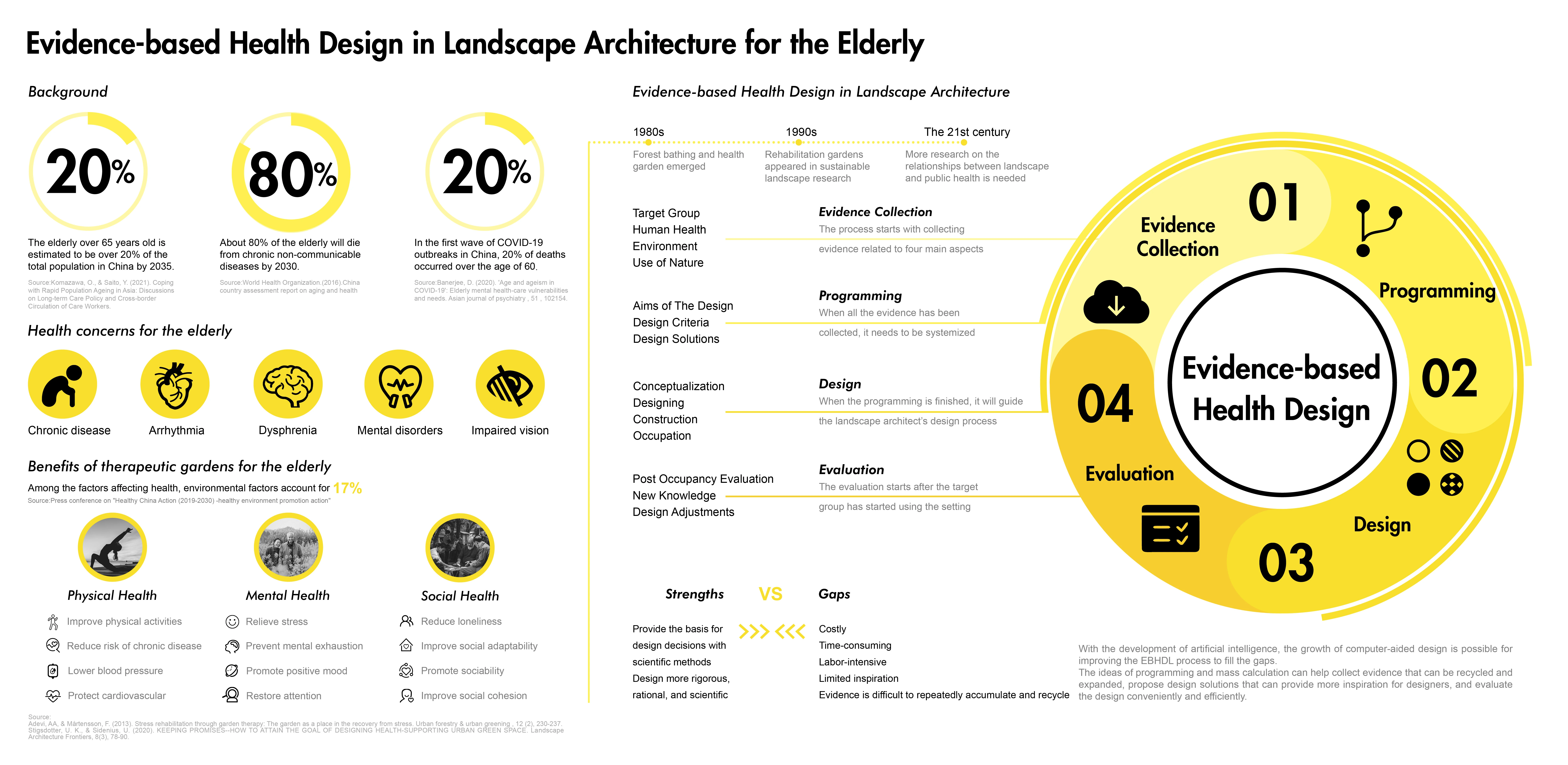 Therapeutic gardens can provide potential health benefits for the elderly. The Evidence-based Health Design in Landscape Architecture (EBHDL) process model can help deliver stated health outcomes. With the development of artificial intelligence, the growth of computer-aided design can improve the EBHDL process to fill the gaps.