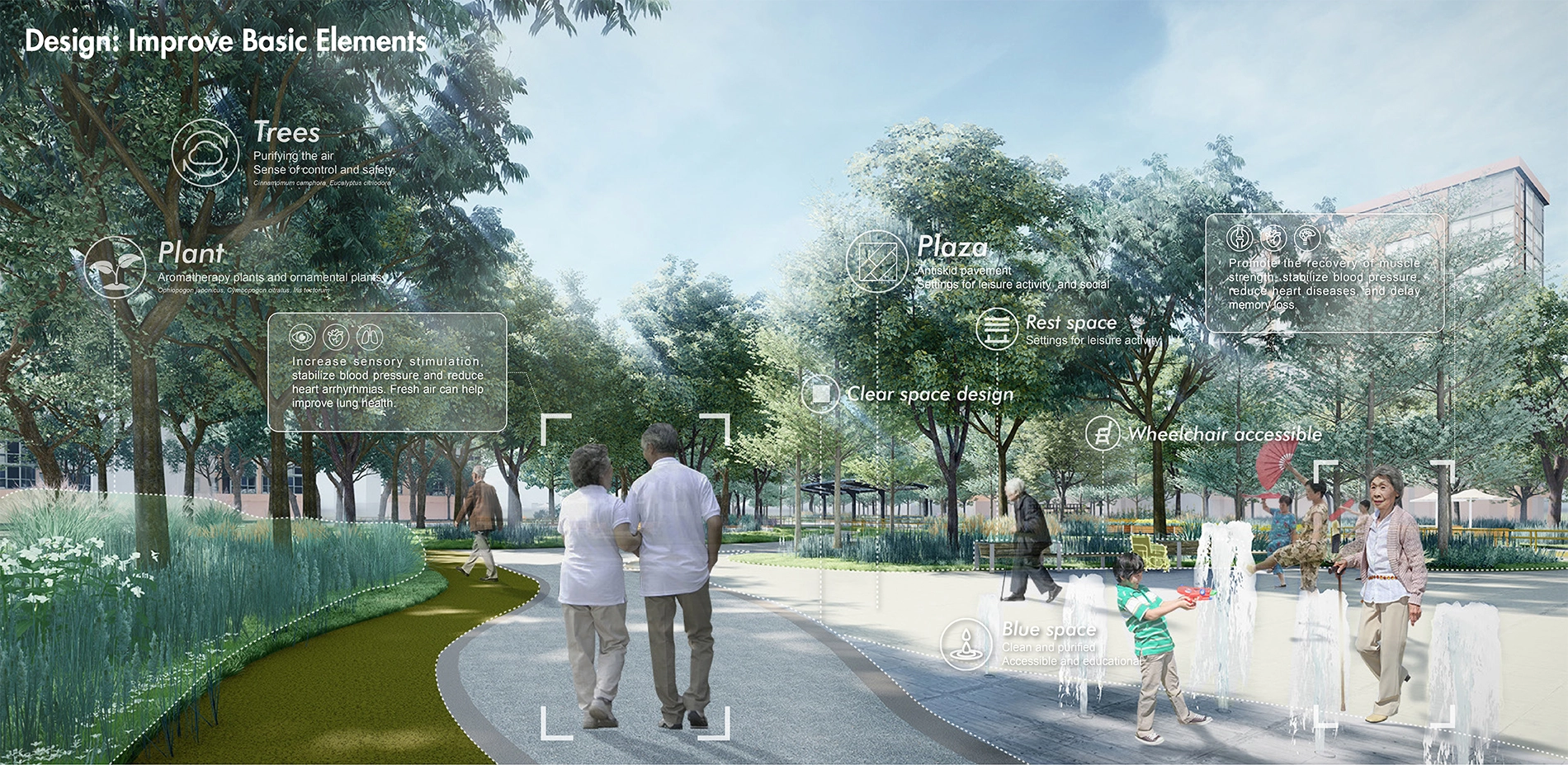 2) Programming. Designers systemize the evidence according to the aims of healthy aging design. Based on the evidence and design criteria, we propose a series of detailed strategies for healthy aging design.