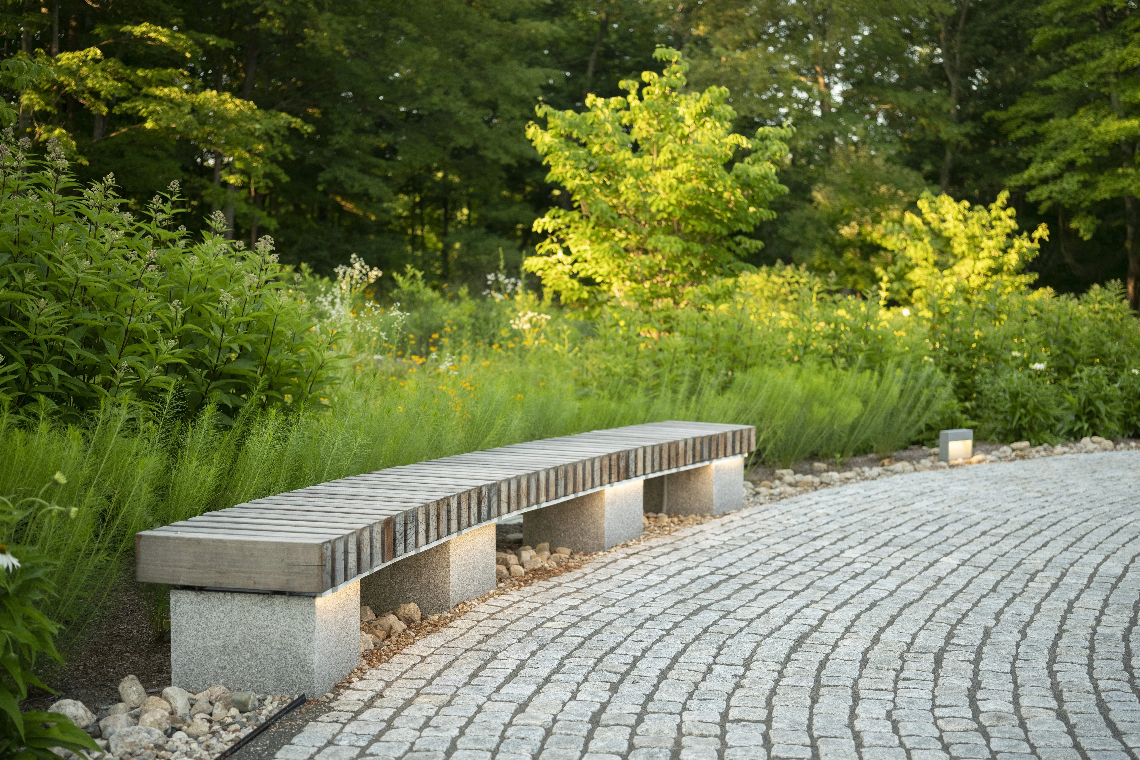 Closely developed alongside the commission and the childrens’ parents, the memorial is carefully woven into an existing clearing without damaging intact forest, planted almost entirely with native perennials sourced from rural Connecticut, built from local materials, and repurposing existing field stones throughout. Set at a topographic low point and enveloped in eastern hardwood forest, the site—a decommissioned Little League baseball field—was donated by a local athletic club and selected over more traditional civic settings for its privacy and meditative quality. Visible from the paths, two ponds located on the site were restored from a eutrophic state to attract wildlife and improve water quality.
