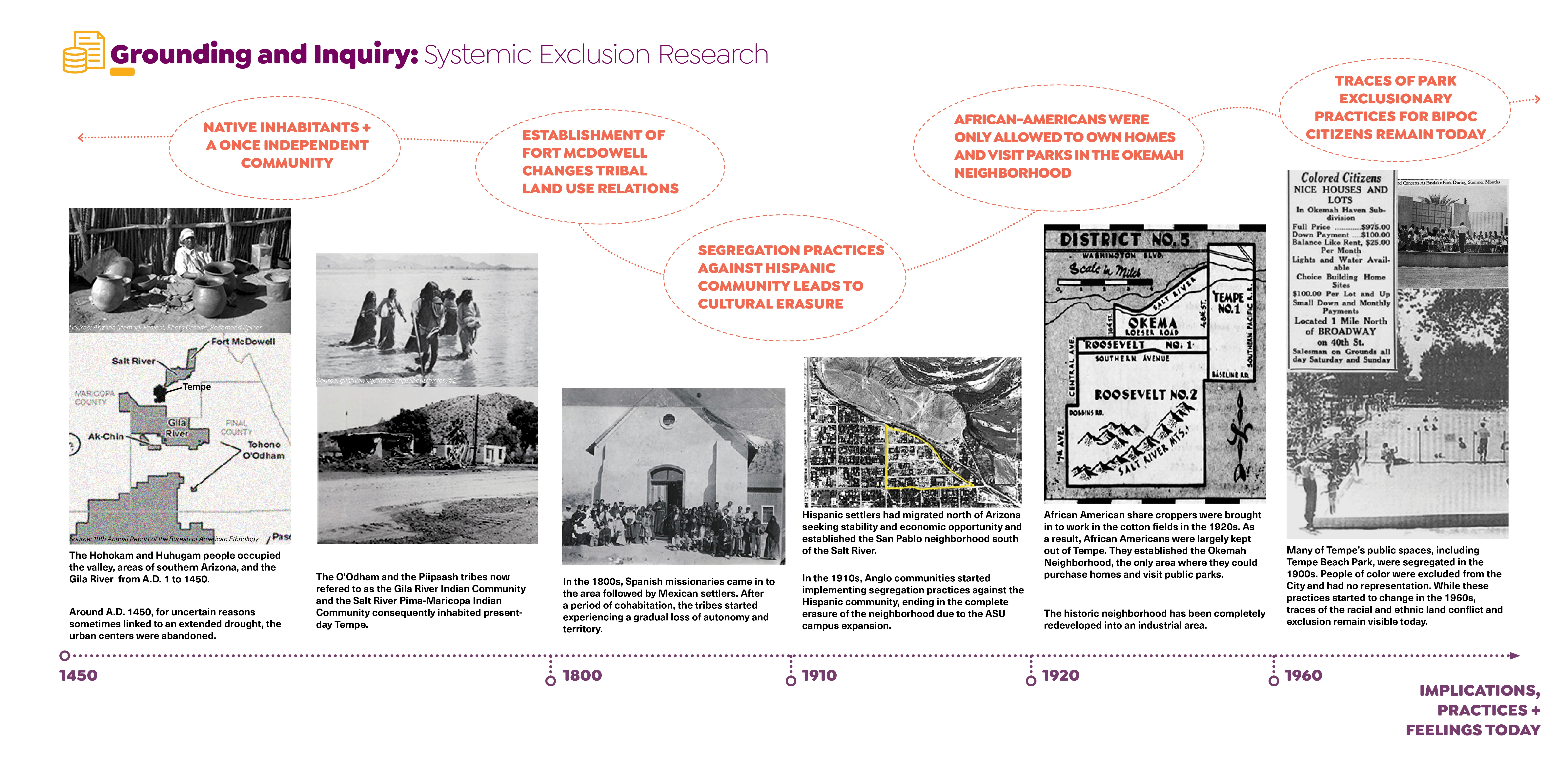 Understanding the history of exclusionary practices in rapidly developed and diverse cities like Tempe gives perspective on the current challenges faced when working toward DEI in public spaces. Traces of ethnic and economic exclusion remain visible in the city today and have influenced feelings of solitude and lack of belonging. The purpose of the S.P.A.C.E.S. equity study is to provide stakeholders with methods for identifying where inequities persist and supplement those findings with tools that guide action for a just future.