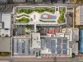 The Jardin de la Familias, or the family garden, is a roof terrace six floors above the hustle of the Mission. With panoramic views to Twin Peaks and Downtown, it creates a safe play space and a respite from the street. Native drought-tolerant and southwest plant species create a verdant subtropical garden and enhance urban biodiversity, with bees and hummingbirds regularly visiting the rooftop.