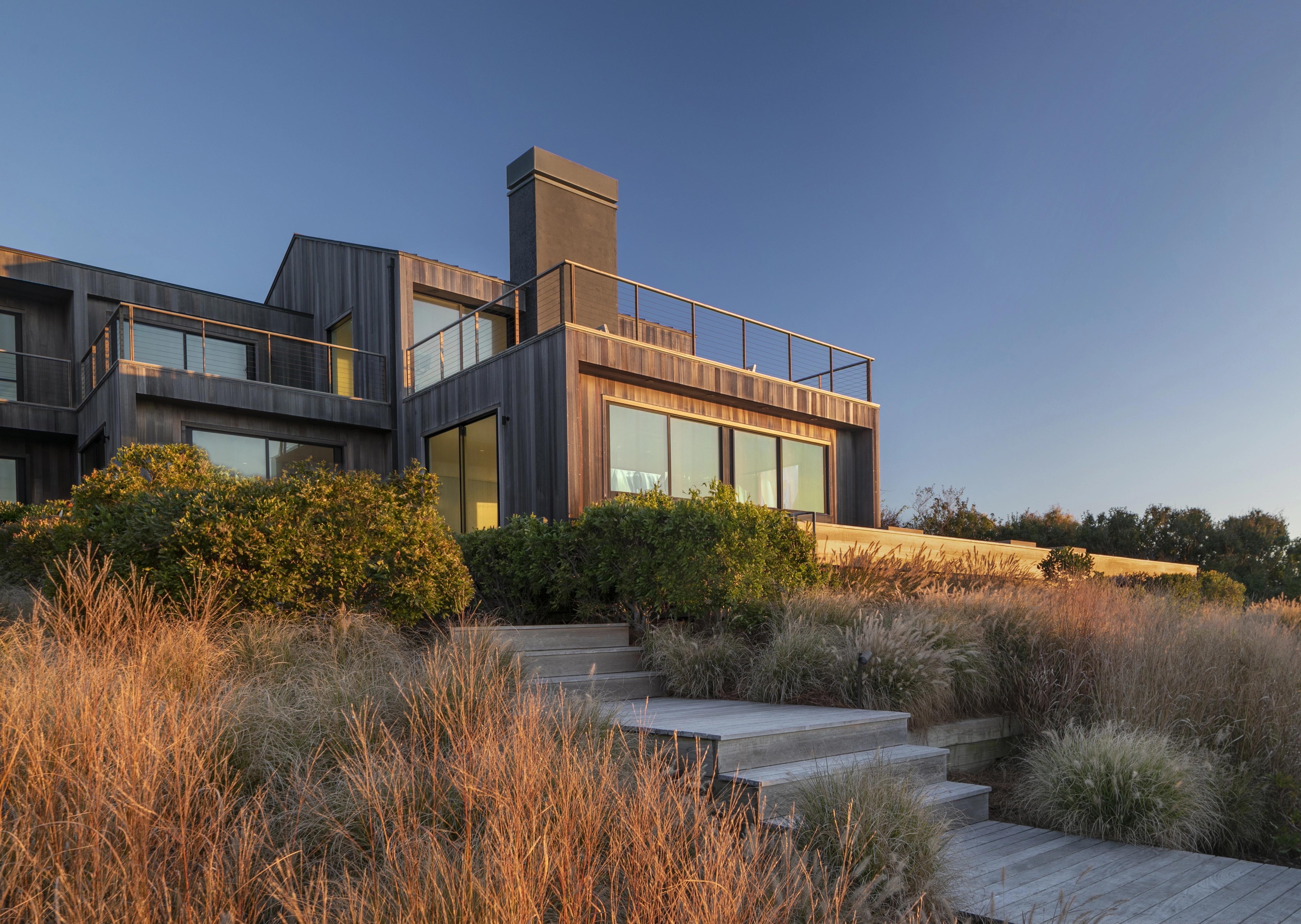 Sensitive interventions such as elevated walkways and the use of native vegetation, provide amenities to the site while preserving the bluff. The use of plants native to the Montauk bluffs, stitch the site into the larger ecological context of the East End.