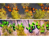 (3) Rewilded Drainage: The transformation of the eastern concrete drainage into a vibrant, rewilded waterway with tree islands and native plantings boosts the site's ecological diversity.