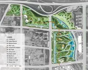 Given the large scale of the site and the short timeline mandated by the local government, several challenges emerge. These include managing the earthwork and topography, transforming the lifeless concrete drainage, and rapidly developing a low-maintenance, extensive park.