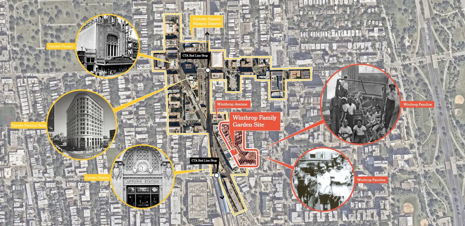 Chicago’s Uptown neighborhood is known for its rich, dynamic history and its mingling of cultures and customs. However, pre-World War II land covenants and legal segregation listed the 4600 block of North Winthrop Avenue as Uptown’s only block where Black families could live. Partly as a result of this racism and outright segregation, the families who lived on Winthrop Avenue developed a tight-knit bond. They referred to each other as the “Winthrop Avenue Family,” and grew up surrounded by love and care of the members of their family on “the Avenue.” Oral history narratives with contemporary members of the family, reveal only the fondest memories of life on the block, their home. Although only one resident from those decades remain, the result was a large extended family that still gathers and refers to themselves as the Winthrop Avenue Family.