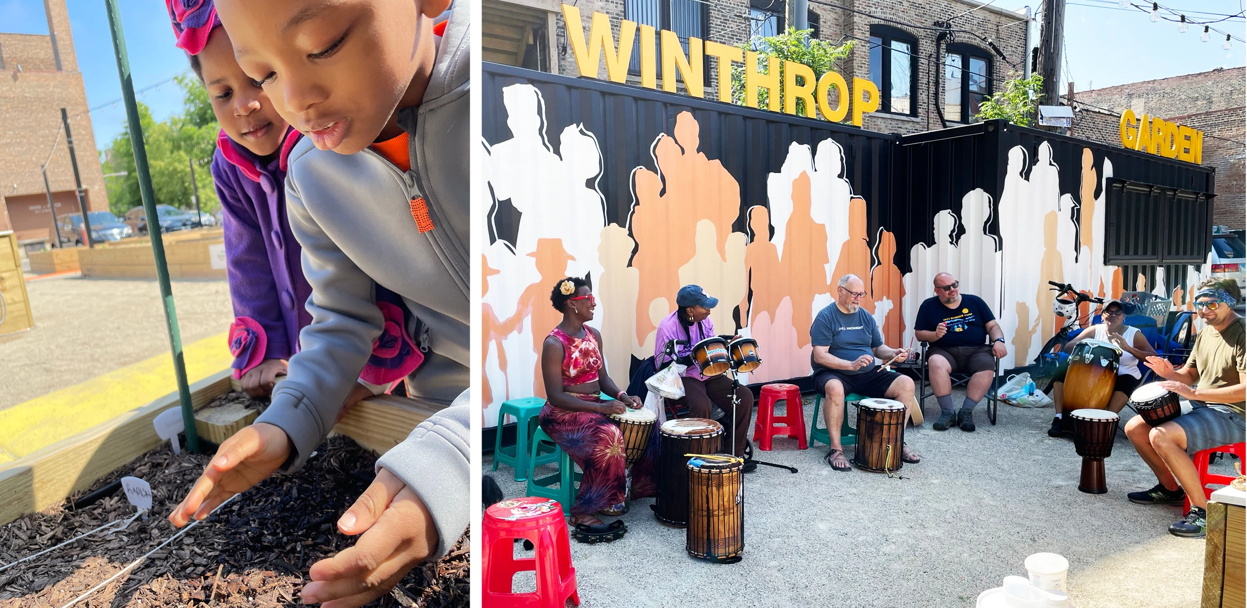 The garden re-dedication in 2022 brought members of the original Winthrop family together to celebrate and reminisce about their childhoods growing up on The Avenue. They shared impactful stories from their lives and the rich purpose they had living together as a community within the Uptown neighborhood. Today, Uptown United serves as a key supporting organization, programming regular community events in the garden and managing the plots and regular upkeep. Whether visiting the garden for a community workshop, planting a new crop of summer vegetables or enjoying local music and food, Uptown residents can learn more about the Winthrop community legacy while carving out the true power of community in their own lives.