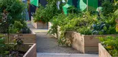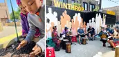 Neighborhood desires for local food production and communal space following the pandemic in 2022 prompted the need to reinvest in this once beloved space. The development of a new design for the renovated garden held fresh opportunities to share the untold story of the Winthrop families while visually representing the community through the design; as individual threads, woven together, forming a rich tapestry rooted in the neighborhood through its past heritage and rich cultural diversity. Vibrant colors and patterns on the site are inspired by the featured facade mural by local artist, Mauricio Ramirez entitled, "Uptown in Bloom". Community garden plots shape the space and provide opportunities for local food cultivation in addition to featuring a central gathering space for community programming and activities.