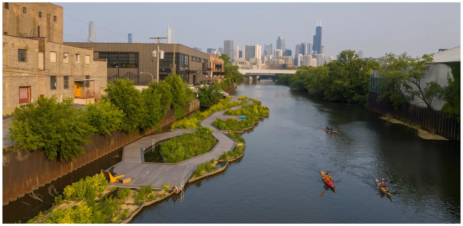 Wild Mile is a 17-acre floating eco-park designed to transform an industrialized stretch of the north branch of the Chicago River into a thriving wildlife corridor.