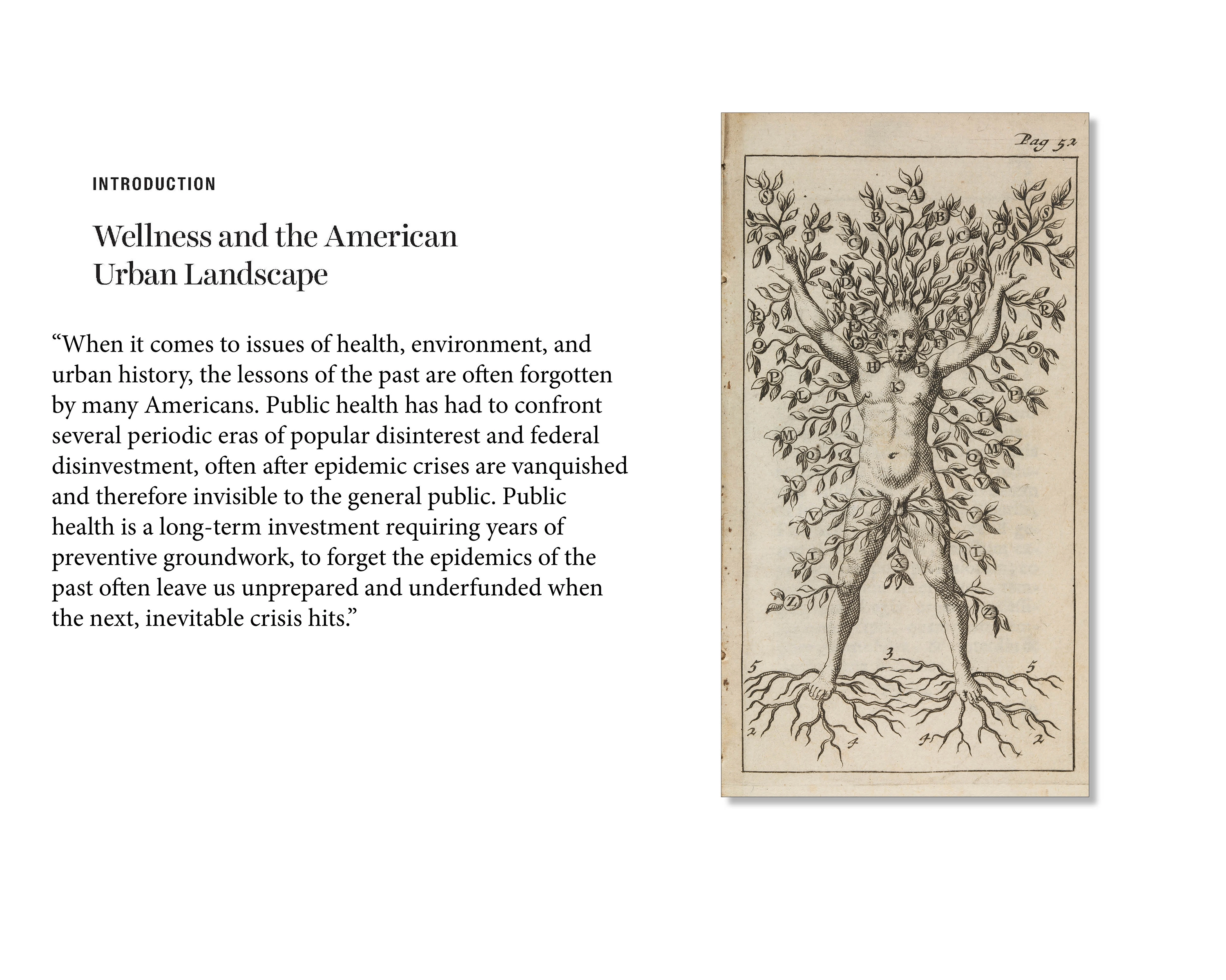 The Topography of Wellness: How Health and Disease Shaped the American Landscape is a chronological narrative of how six historical epidemics had a reciprocal relationship with urban landscapes, reflecting changing views of the power of design, pathologies of disease, and the epidemiology of the environment. From the contagions of cholera and tuberculosis to the more complicated pathways of contemporary chronic illnesses, each disease narrated here, alongside their associated combat strategies of urban quarantine, eradication, and acupuncture has left its mark on the present-day environment. The consideration of this history ends with a call to reframe and reclaim health and equity as central tenets of our profession for the future.