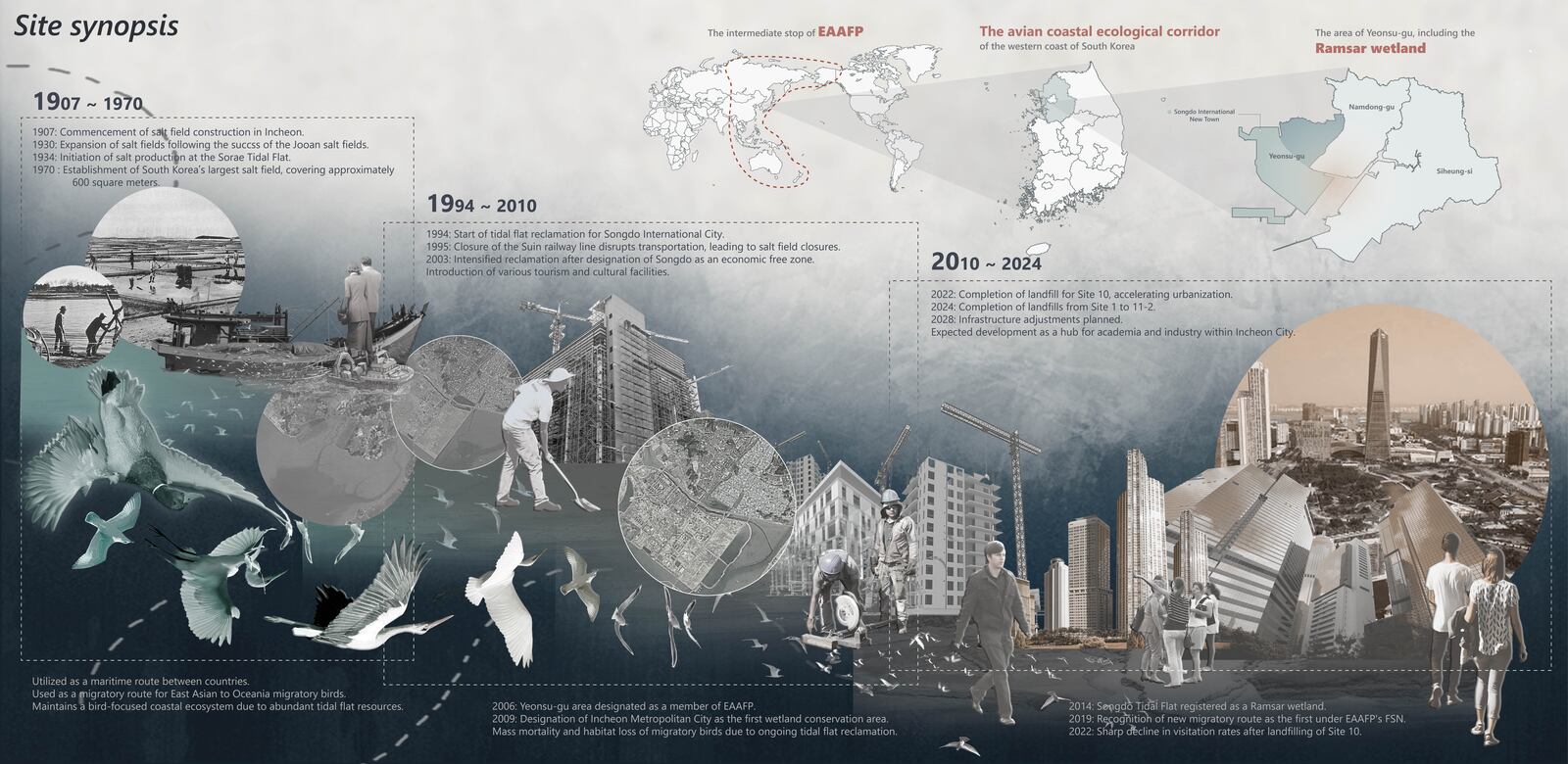 The coexistence of bird habitats and cultural facilities in the urban area has showed a unique aspect of interaction between nature and humans. However, urbanization has led to the reclamation of tidal flats, resulting in the following issues.