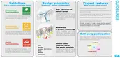 The project follows three principles: environmental, economic, and social sustainability. Design principles include utilizing existing conditions, protecting ecology, controlling costs with recyclable materials, and cooperative construction.