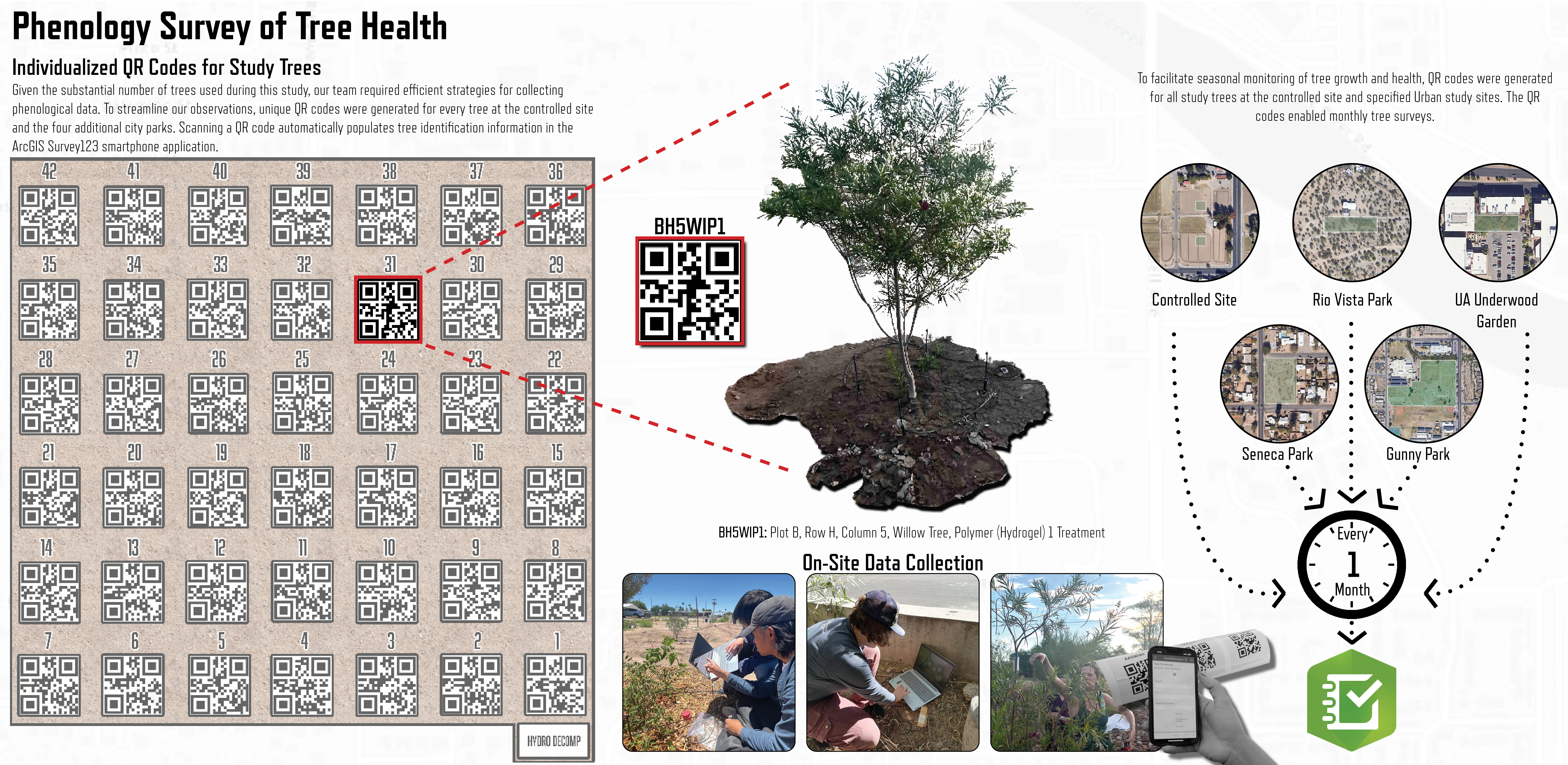 We conducted extensive data collection using above- and below-ground sensors to measure multiple variables: temperature, humidity, soil moisture content, and soil electrical conductivity. Additionally, monthly phenological surveys of each tree were conducted to monitor seasonal changes in appearance.