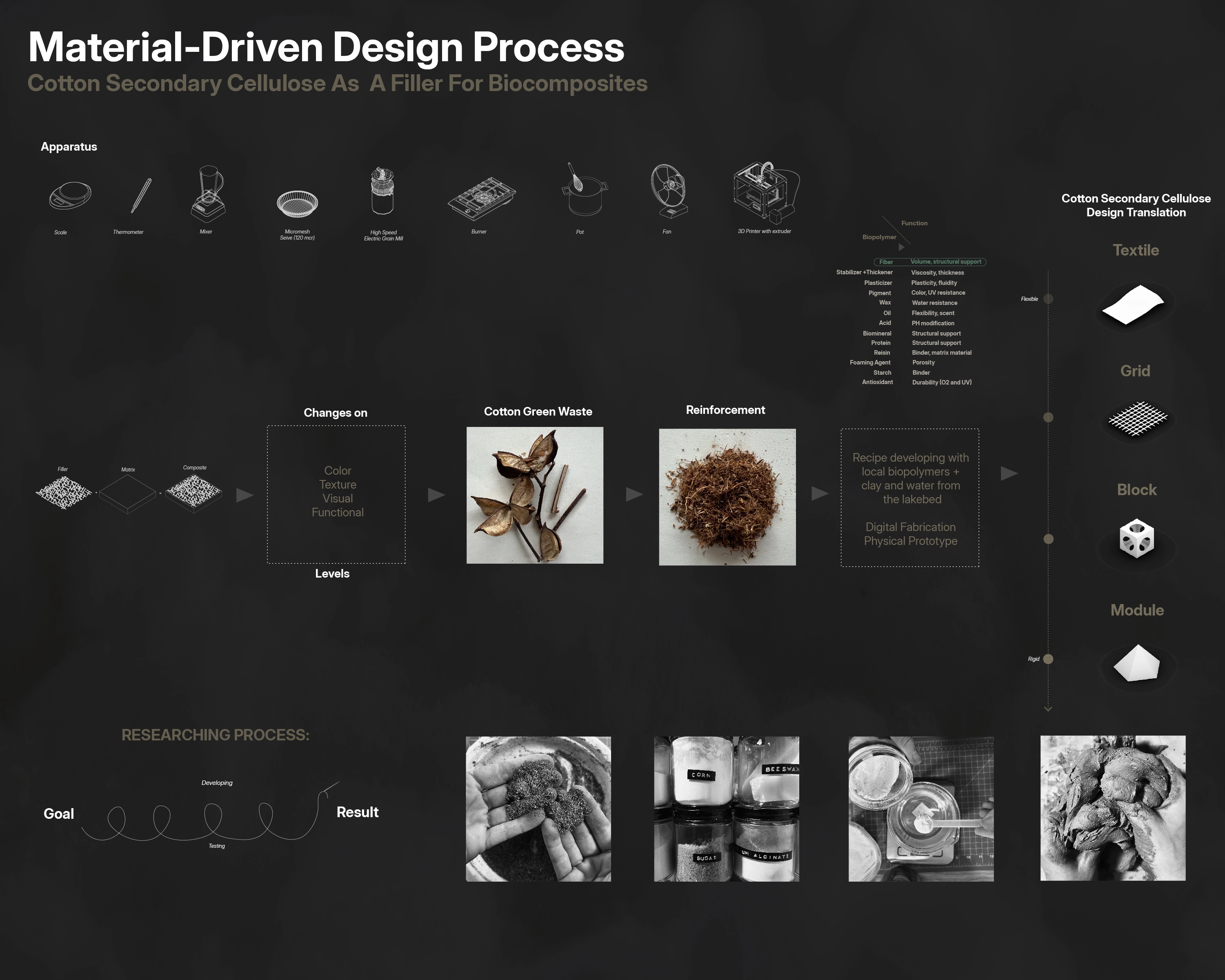 By examining cotton's secondary cellulose and its potential as a biocomposite filler, the proposed methodology reimagines the future of fibers and the ecological framework of cotton cultivation and water management. "Textile Landscapes" offers a comprehensive strategy for environmental stewardship at both the landscape and material levels.