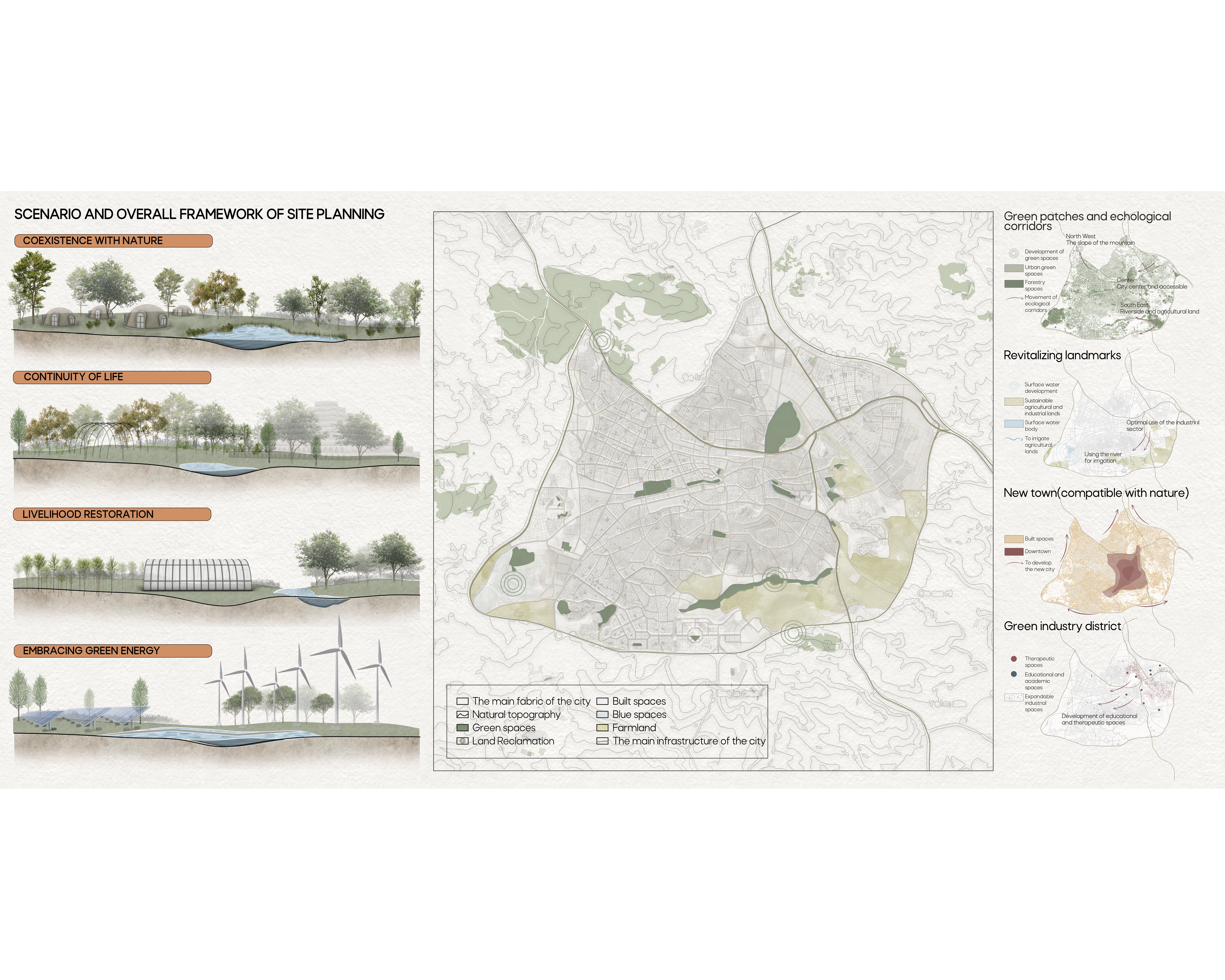 This project addresses the challenges of post-earthquake life revitalization, including refuge and health, socio and cultural, economic, and infrastructure through the use of Nature-Based Infrastructures (NBI) global concept. Inspired by nature, we aim to create a city that is not only self-sufficient but also in harmony with its natural surroundings.Proposed Site Selection