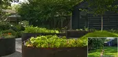 The irregular shaped Corten steel raised beds in the Little Farm are rotated in various directions, presenting vegetables as living art and creating playful spaces for children to engage in hide-and-seek. The food grown includes annual leafy greens and herbs from East Asian origins, reflecting the family’s roots and diet.