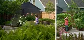 The Little Prairie, located in the front yard, is public-facing and designed for lower maintenance. It functions as both a natural playground and a nature-learning classroom, featuring native plants, repurposed materials, and stormwater management solutions. The Little Garden, tucked away in the backyard, offers an immersive lounge area surrounded by a pollinator garden. The Little Farm, also in the backyard, includes raised beds for edible gardening and an outdoor dining space. This area allows family members to garden together and enjoy fresh, homegrown produce.