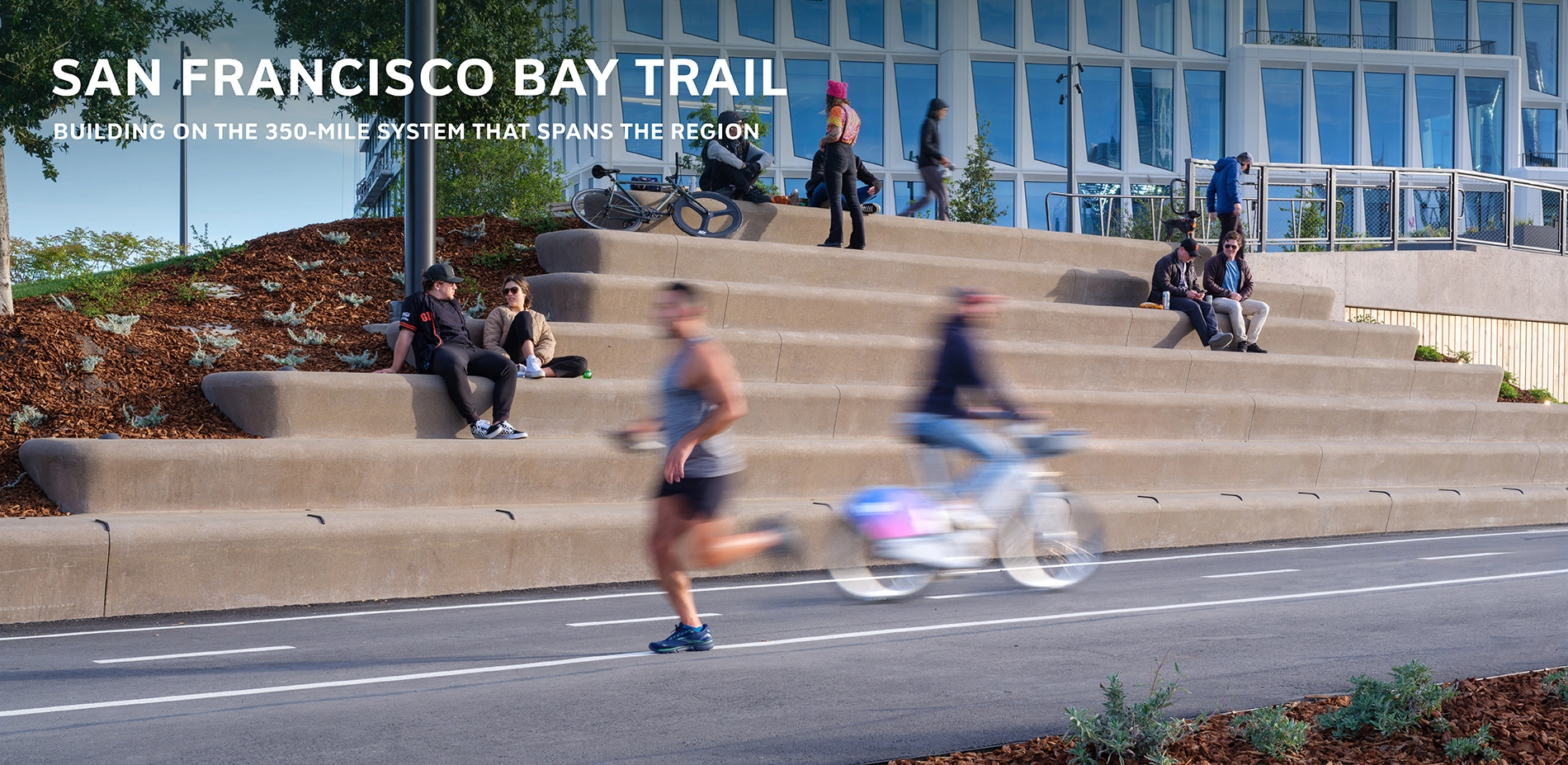The park connects Mission Rock with the region through the San Francisco Bay Trail, connecting the southeastern waterfront to a 350-mile trail network, downtown San Francisco, and South of Market. Once complete, the Bay Trail will provide a continuous pedestrian and cycling corridor around the San Francisco Bay.