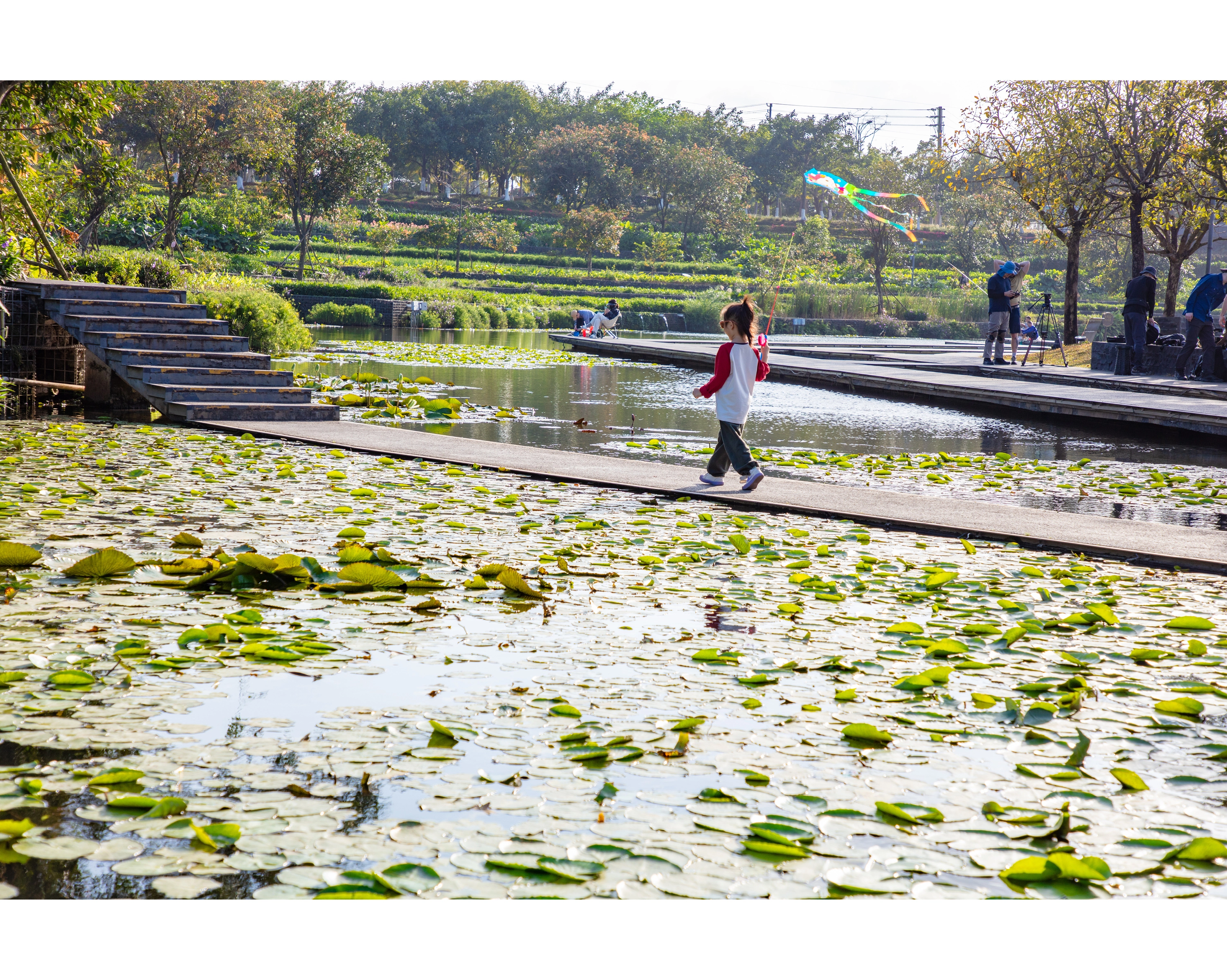Bio-filtration: In Fengxiang Park, where concrete flood walls and garbage dumps once stood, constructed wetlands now line the riverbank, serving as water purification facilities. These wetlands treat two types of water: nutrient-rich non-point source pollution runoff and sewage from local urban villages lacking access to centralized sewage treatment. This natural system can clean 6000 tons of polluted water daily, improving it to swimmable quality. Additionally, mobile pre-treatment equipment at wetland inlets handles sewage, removing odors and pathogens before channeling grey water into the wetlands, and cleaning 3,500 tons of domestic sewage daily. Water flow management is flexible, with options to switch or combine flows as needed. Regular testing ensures water quality remains safe for public use.