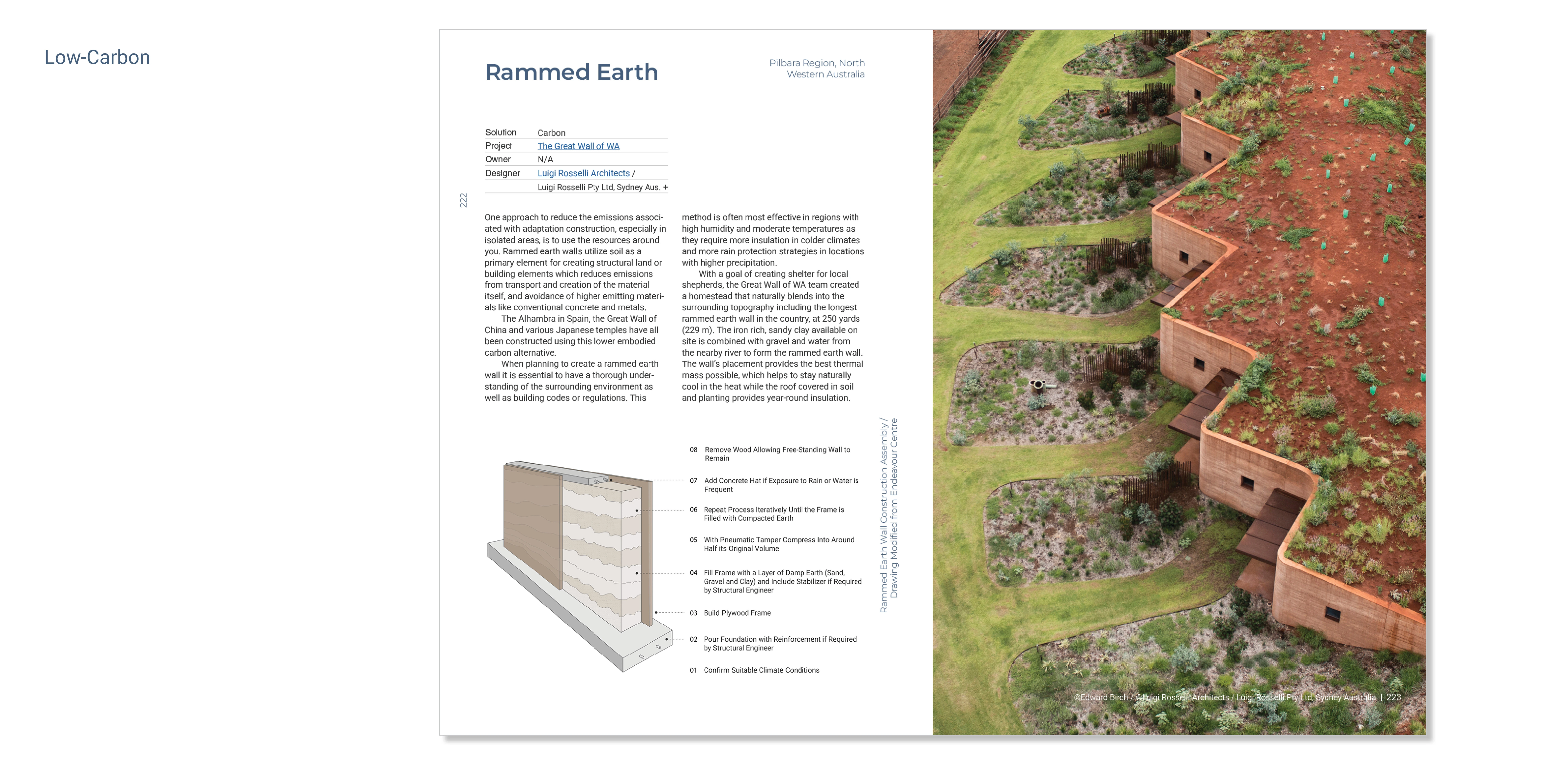 Each project showcases a technique with insights on community engagement, project team, lessons learned, a technical detail or process drawing and a project image that makes the content accessible to a broader audience.