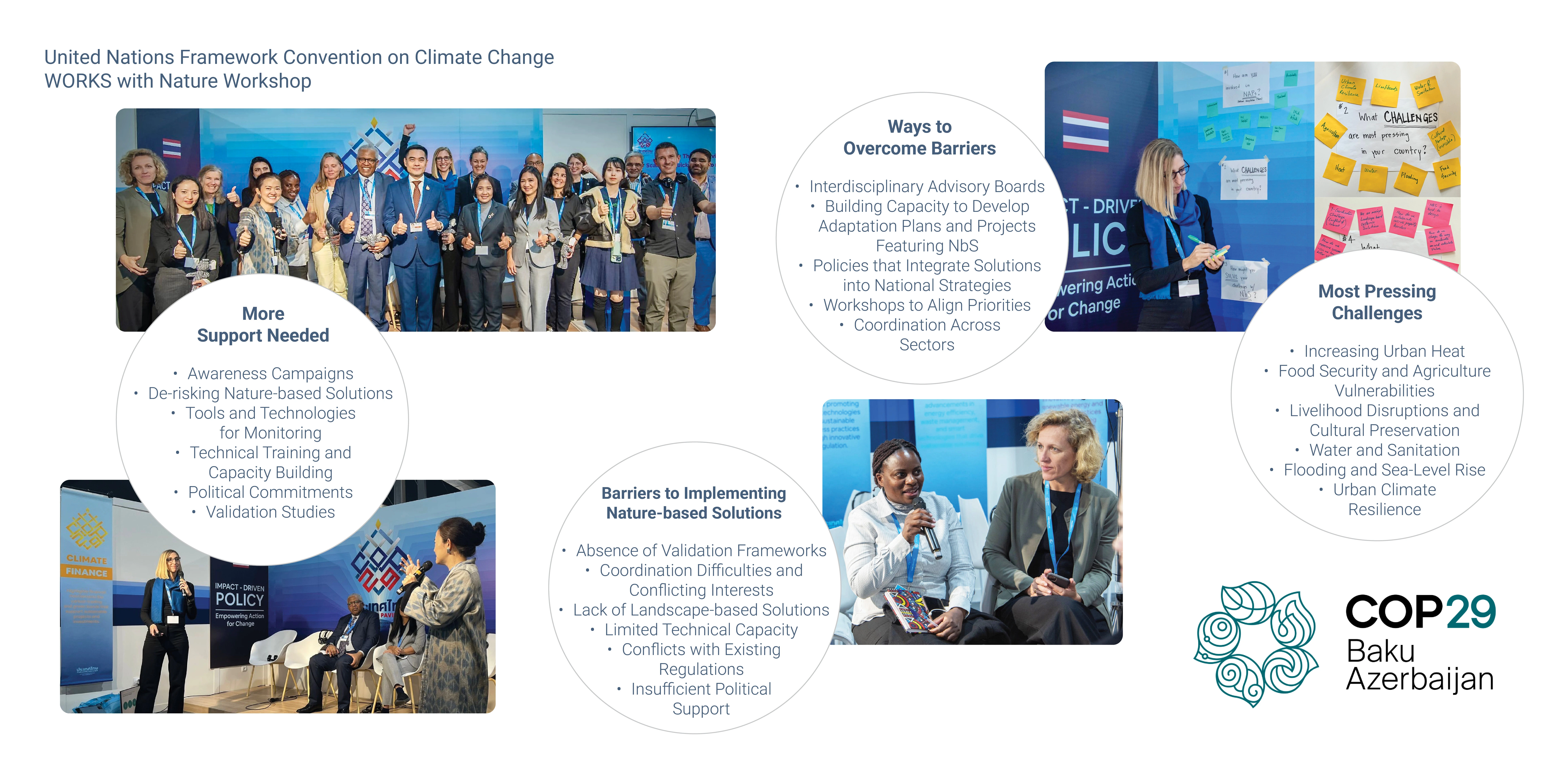 To overcome these challenges, the leaders emphasized the importance of building capacity, creating interdisciplinary advisory boards, integrating nature-based solutions into national policies, and enhancing sector coordination. They also highlighted the need for more support in areas such as technical training, awareness campaigns, monitoring tools, investment validation, and political commitments.
