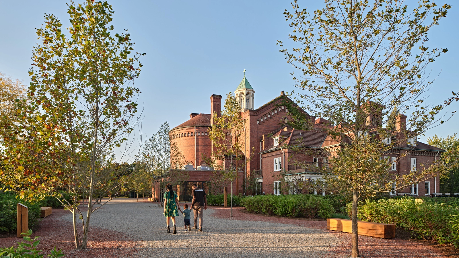 Anchoring a burgeoning arts district in Detroit, this project thoughtfully transforms an underutilized former churchyard into an open-air haven where various elements—sculpture garden, public promenade, skate park, generous swaths of open lawn, and more—work together to welcome everyone. A modest yet socially impactful transformation.