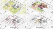 Site and context: Given the neighborhood’s unique cultural legacy and an existing palimpsest of material degradation, the team researched the site, neighborhood, and community. Photos documented materials, plants, and structures, and on-site observations noted community activity. Soil analysis and geotech investigations revealed saturated soils and buried building ruins, which informed site layout and foundation design for large elements such as sculptures. The project ambition was not to wipe the slate clean, but instead to reveal and celebrate the identity of the site and integrate the new project with its surroundings.