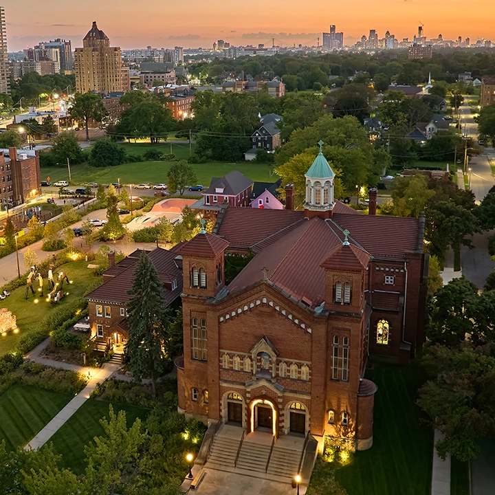 Scope and Size: The client requested an arts campus with diverse program and a strong community focus. Site constraints included inaccessible grades, poor drainage, a functional municipal alleyway, and centuries of degradation and building ruins. Aimed at contributing to the city’s artistic renaissance, the client’s program requests included outdoor art galleries, a sculpture park dedicated to Detroit artist Charles McGee, play areas, outdoor F&B, events spaces, and a new skate park designed in collaboration with Tony Hawk. Existing buildings including the church, rectory, garage, and farmhouses were adaptively repurposed by multiple architectural groups into galleries, workshops, studios, and F&B spaces.