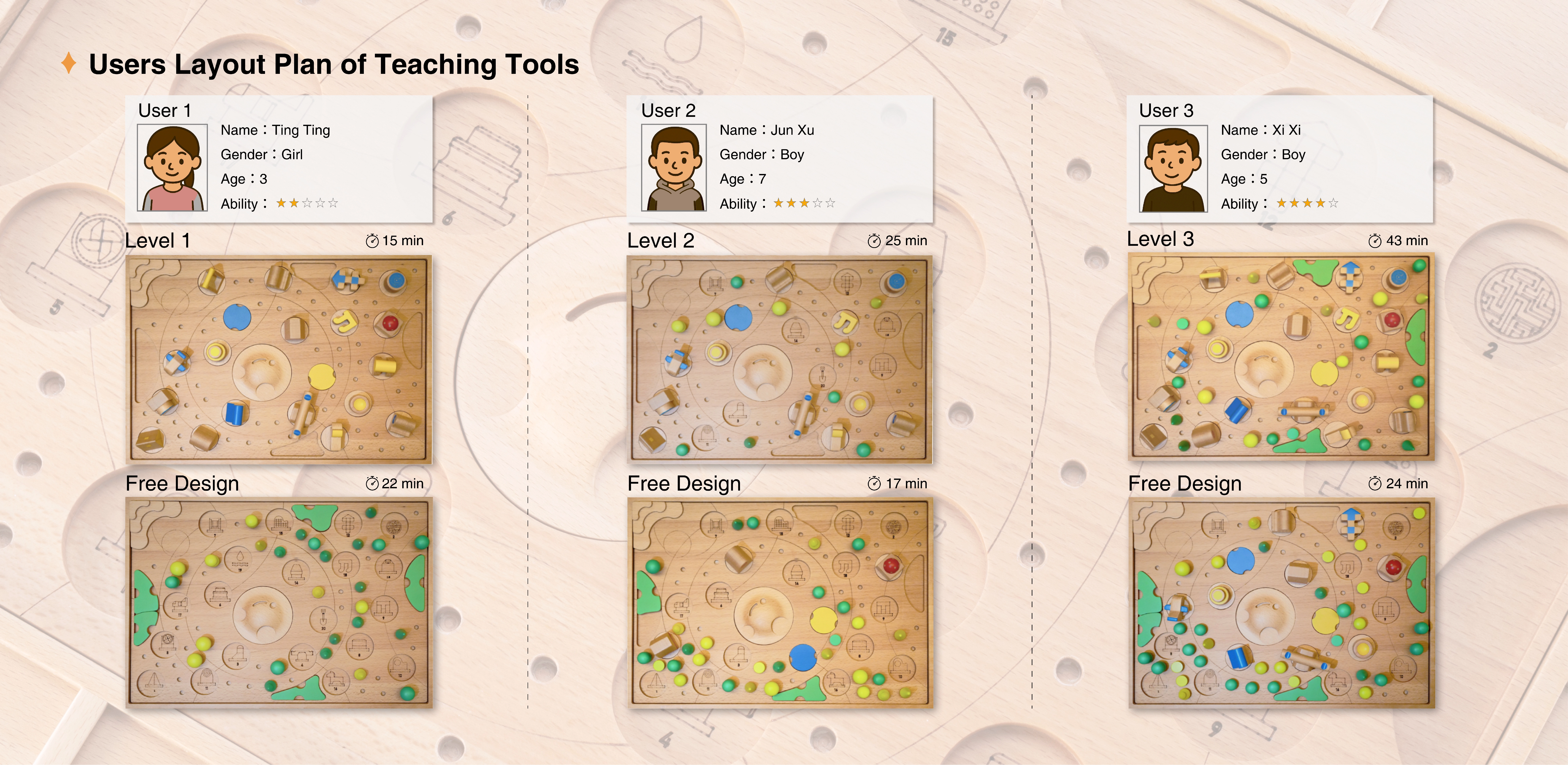 The number of children diagnosed with autism has been increasing steadily in recent years. This group faces unique challenges during development, particularly in adapting to outdoor environments and integrating into society. Through in-depth conversations with parents and teachers, we discovered their shared desire for the children to leave the confines of indoor spaces, experience nature, and participate in social activities in parks.