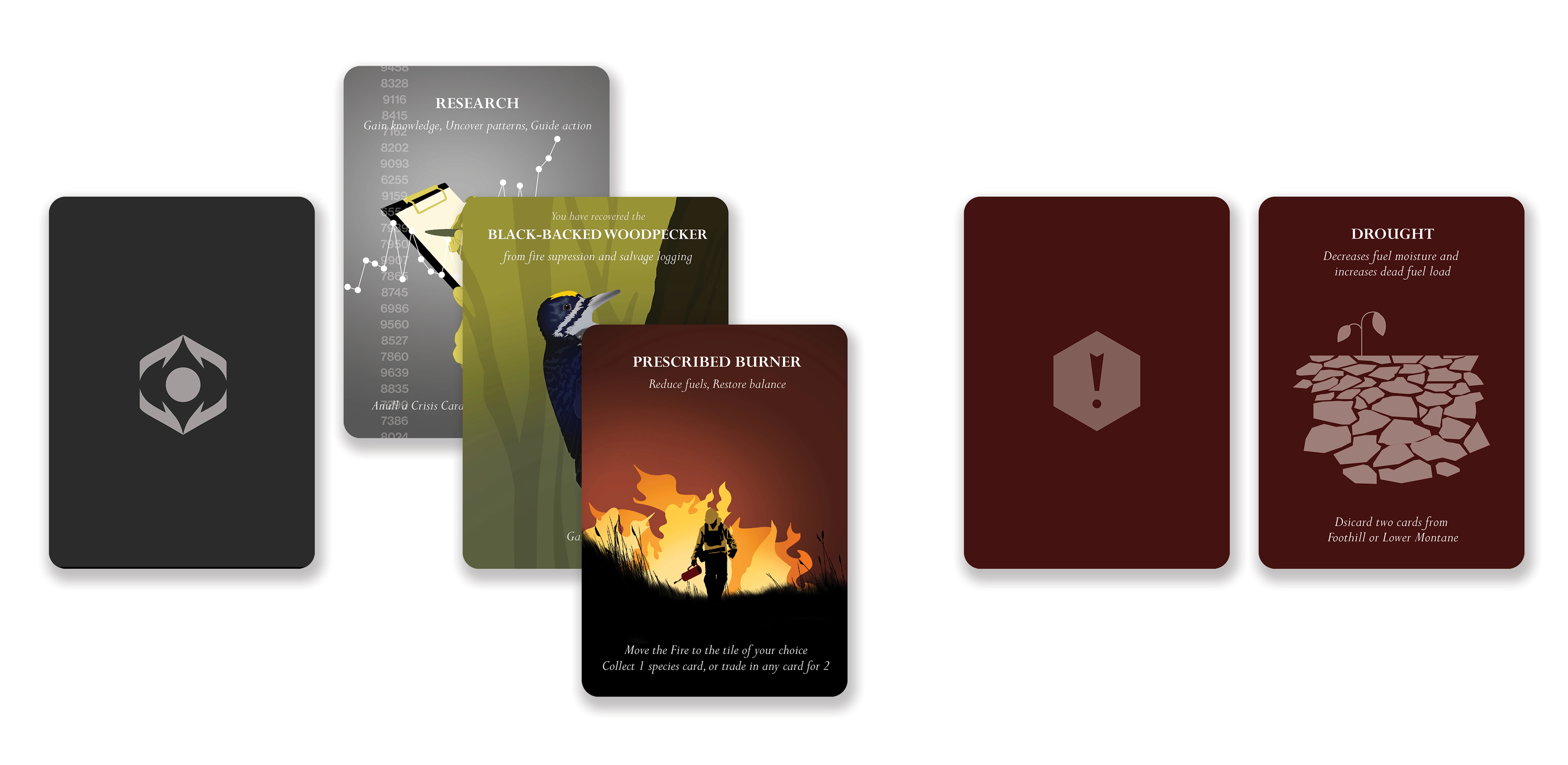 On each turn, players choose to remove infrastructure or collect from 92 unique fire-adapted plants. Plant sets can be traded for Restoration cards: