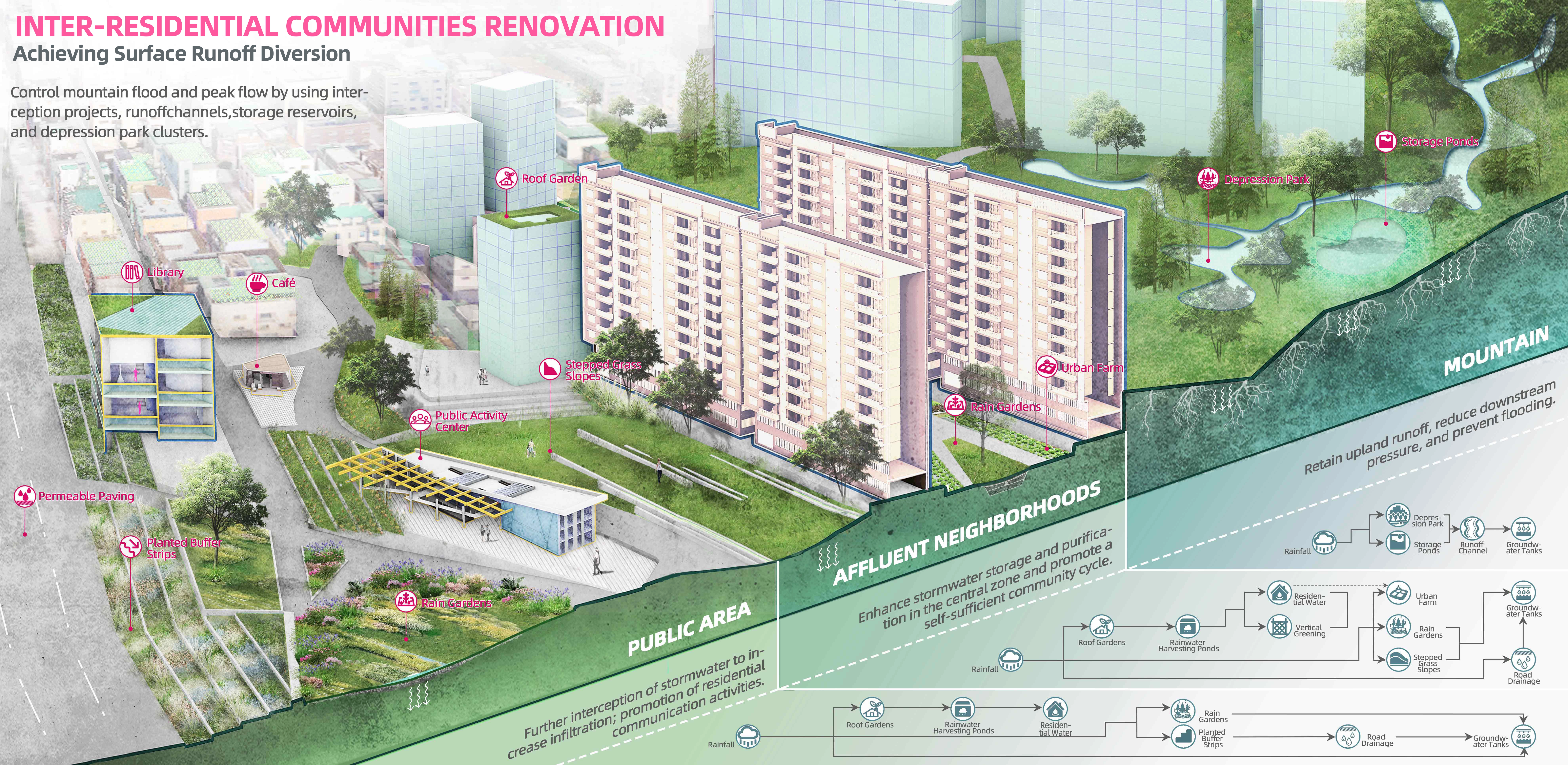 Node 2: The Adjoin area, characterized by moderate topography and the coexistence of high-end residential areas and flood-prone semi-basement districts, necessitates a multifaceted approach. The following strategies can be implemented: