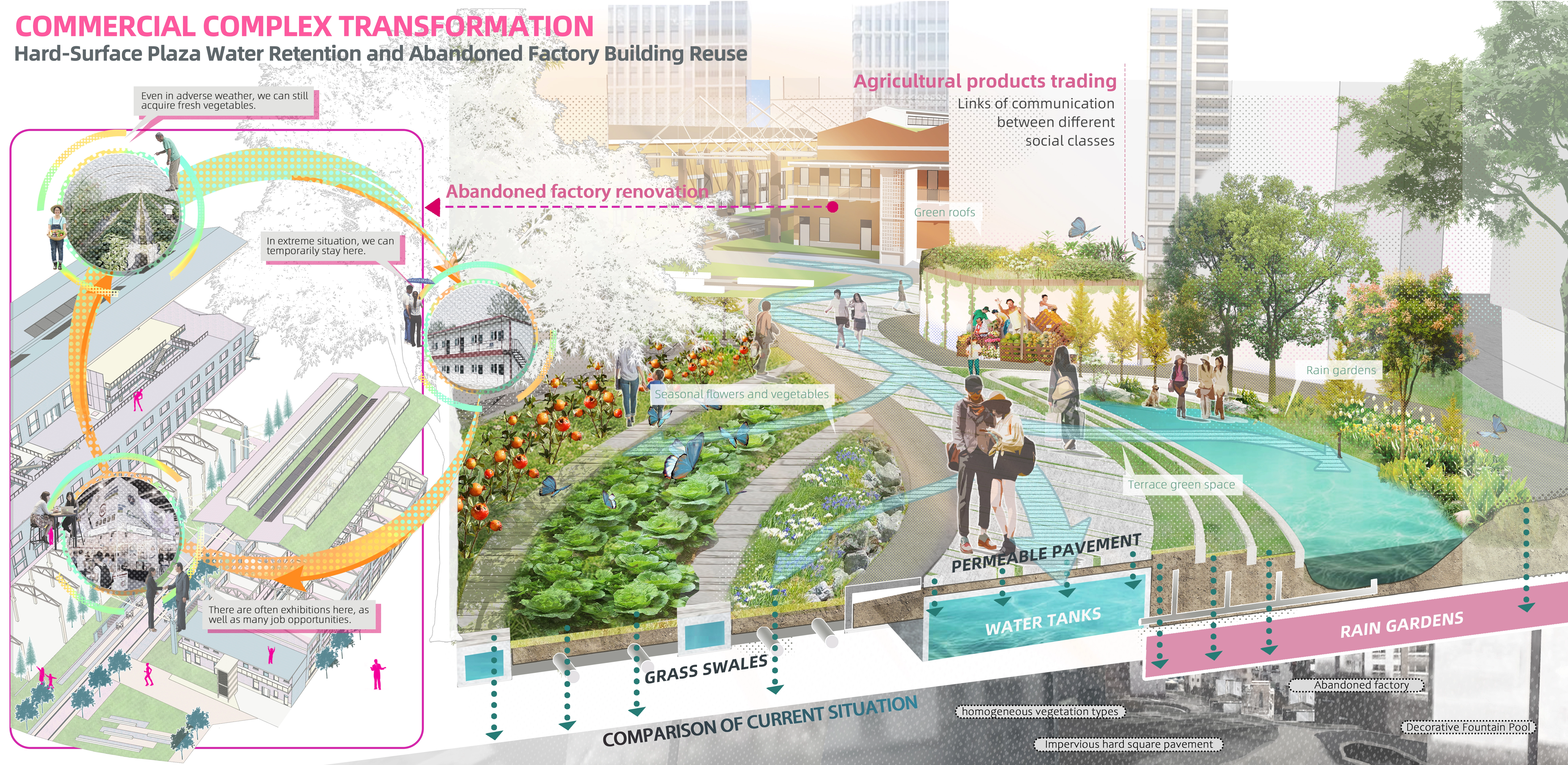(1) Utilize vacant commercial areas and repurpose existing factories to establish rainwater collection systems, ensuring efficient rainwater management and reducing the burden on existing drainage systems.