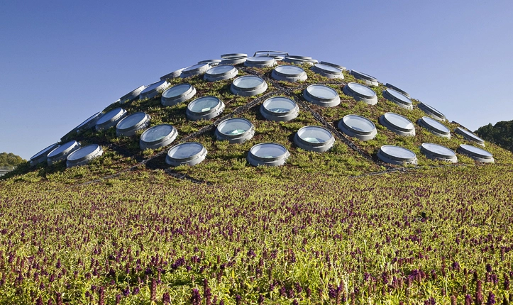 - The six-inch deep living roof helps reduce stormwater runoff by more than 90 percent.