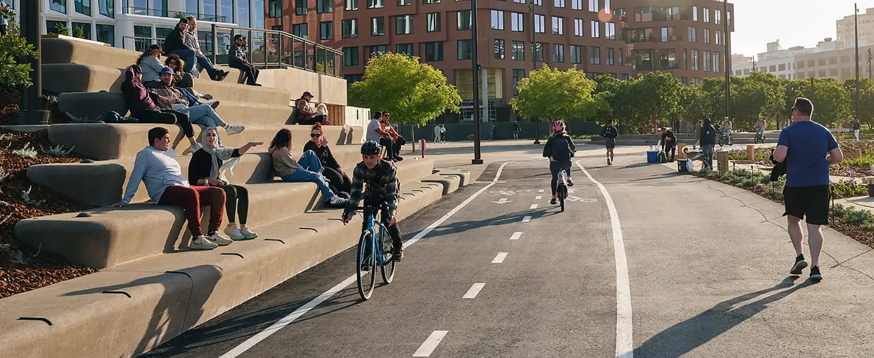 Landscape architects help cities design interconnected streets, parks, and plazas that encourage low-carbon ways of getting around and maximize the benefits of a dense built environment. They help cities retrofit existing infrastructure to encourage walking and biking and create safe, seamless connections to different modes of travel.