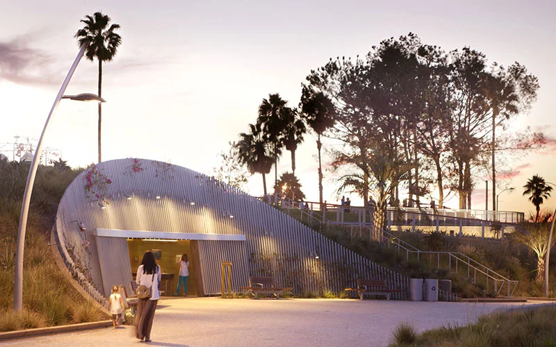 In Tongva Park in Santa Monica, James Corner Field Operations put accessible bathrooms at the entrance of the park, directly off the street, enabling all park visitors regardless of ability, age, or housing status to access the facilities.