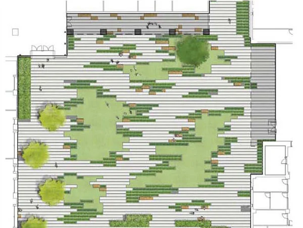 For the Cardiovascular Research Institute, they wanted the landscape of this courtyard to be different from other places on campus. They wanted it to have a different character and quality than the rest of the landscape, which was more minimal. They wanted something very interactive that encouraged people to come and meet.