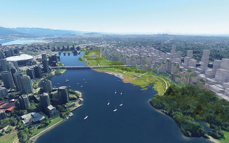 We went directly to the Host Nation cultural advisors, Tsleil-Waututh Nation knowledge keeper Charlene (Char) Aleck, and Squamish artist Cory Douglas and asked: what does a decolonized landscape look like to you? They wanted to imagine a place where they feel like they belonged. Right now, the way the False Creek area is set up, there aren't many places where they feel they belong.