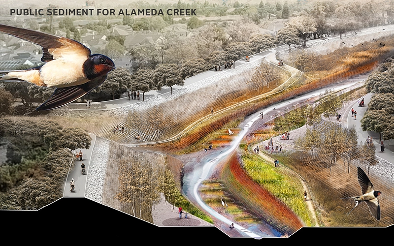 The aim is to not just deliver built work, but envision a program that begins to generate new ties between communities working in, living in, understanding, and loving the landscapes that sustain them. This could take the form of unlocking sediment trapped upstream to nourish protective bay landscapes and cushion the impacts of extreme weather and sea level rise.