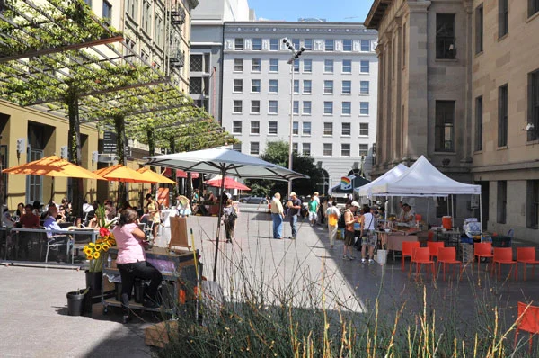 Your firm has also been working with the Yerba Buena Community District to create a new vision for the "next generation of public space" in this central part of San Francisco. The 10 year plan includes both large scale projects and short term design interventions. The goal is to promote street life and increase social interaction. What are the key problems facing the community? What are the central elements of the new plan and the many design proposals?