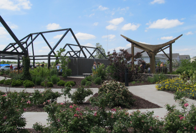 The Butterfly Garden and Overlook is part of our Landscapes of Resilience Project, which aims to show how green spaces can support community resilience and recovery in the wake of a tragedy – in this case, the tornado that killed 161 Joplin residents in 2011. We collaborated with Traci Sooter and students from Drury University, city officials, psychologists, and community members to design this healing garden. The result is a Sacred Place with design themes related to the mourning process and a butterfly pavilion referencing children’s reflections that butterflies helped them during the storm.